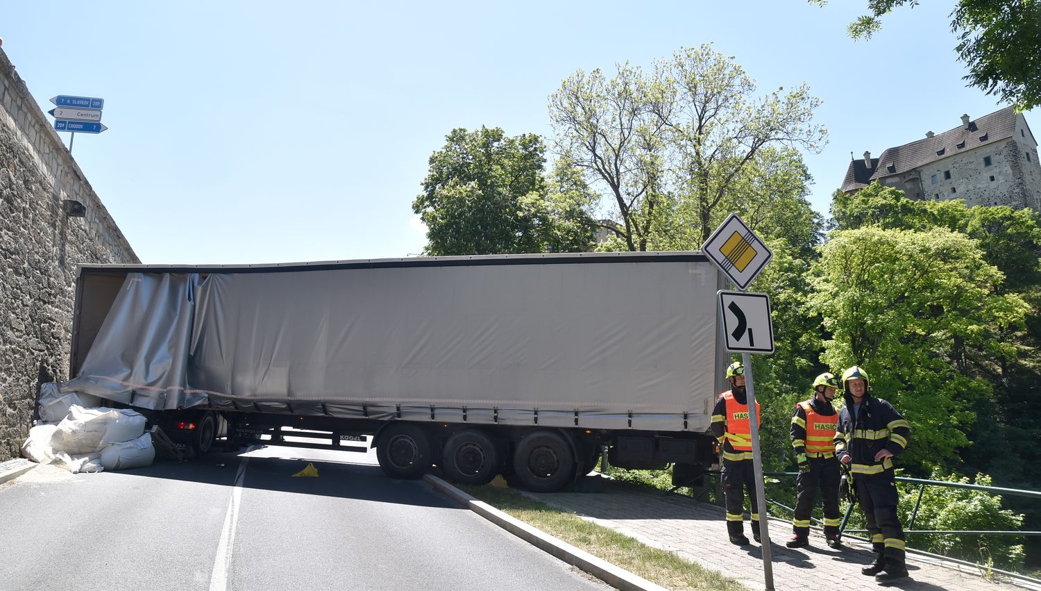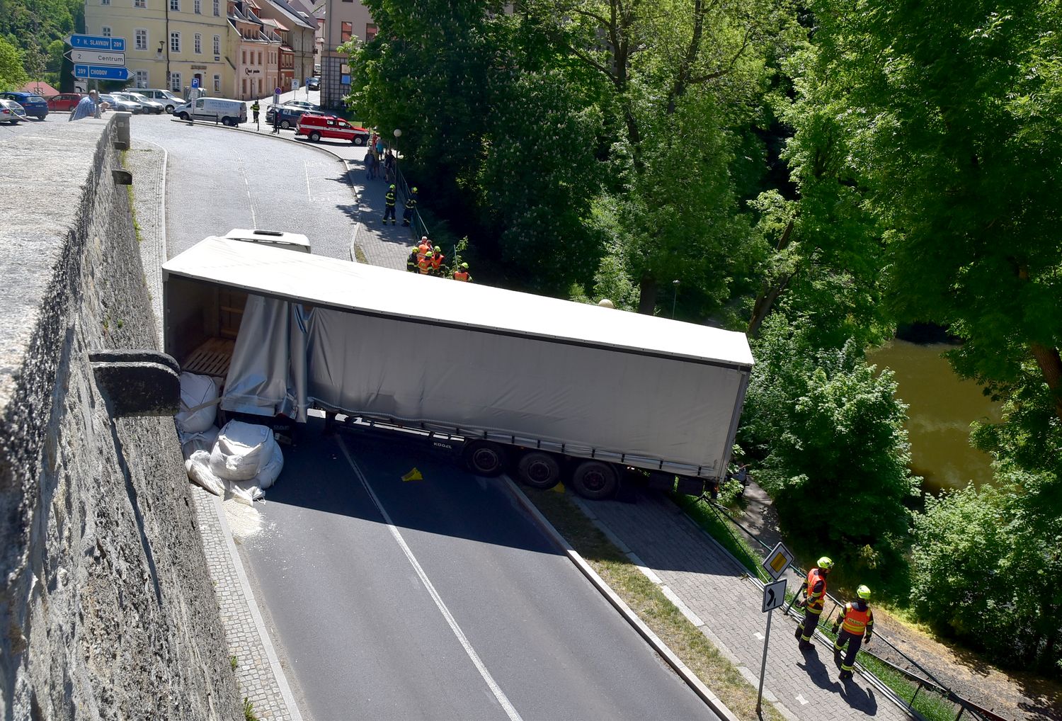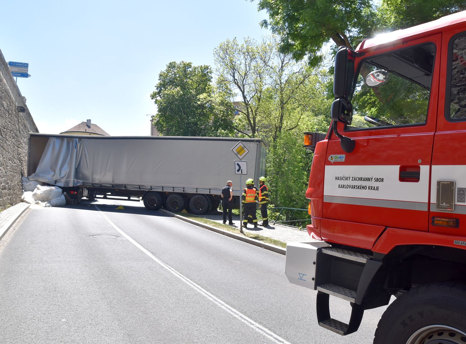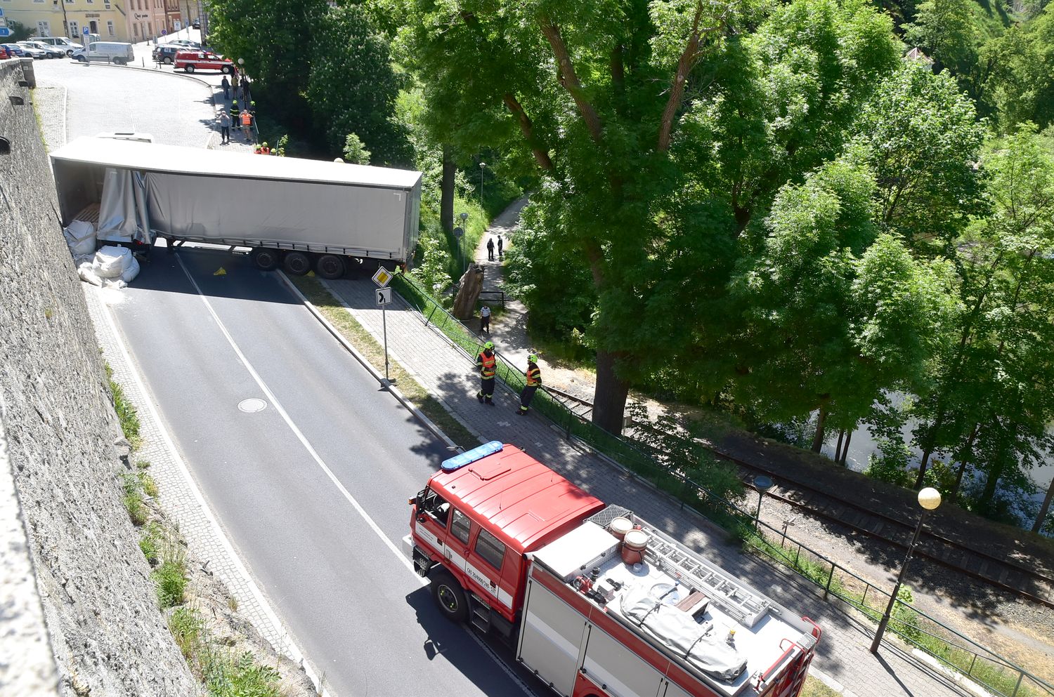 Nákladní auto převážející sypký materiál havarovalo v úterý 30.5.2023 po poledni na silnici v Lokti nad Ohří. Kamion se zapříčil přes celou šíři komunikace, prorazil zábradlí a zadní částí zůstal nad srázem. Kvůli nehodě bylo nutné zastavit provoz jak na silnici, tak na železnici, která vede přímo pod místem nehody a stále hrozilo, že by nákladní auto mohlo spadnout ze srázu dolů.