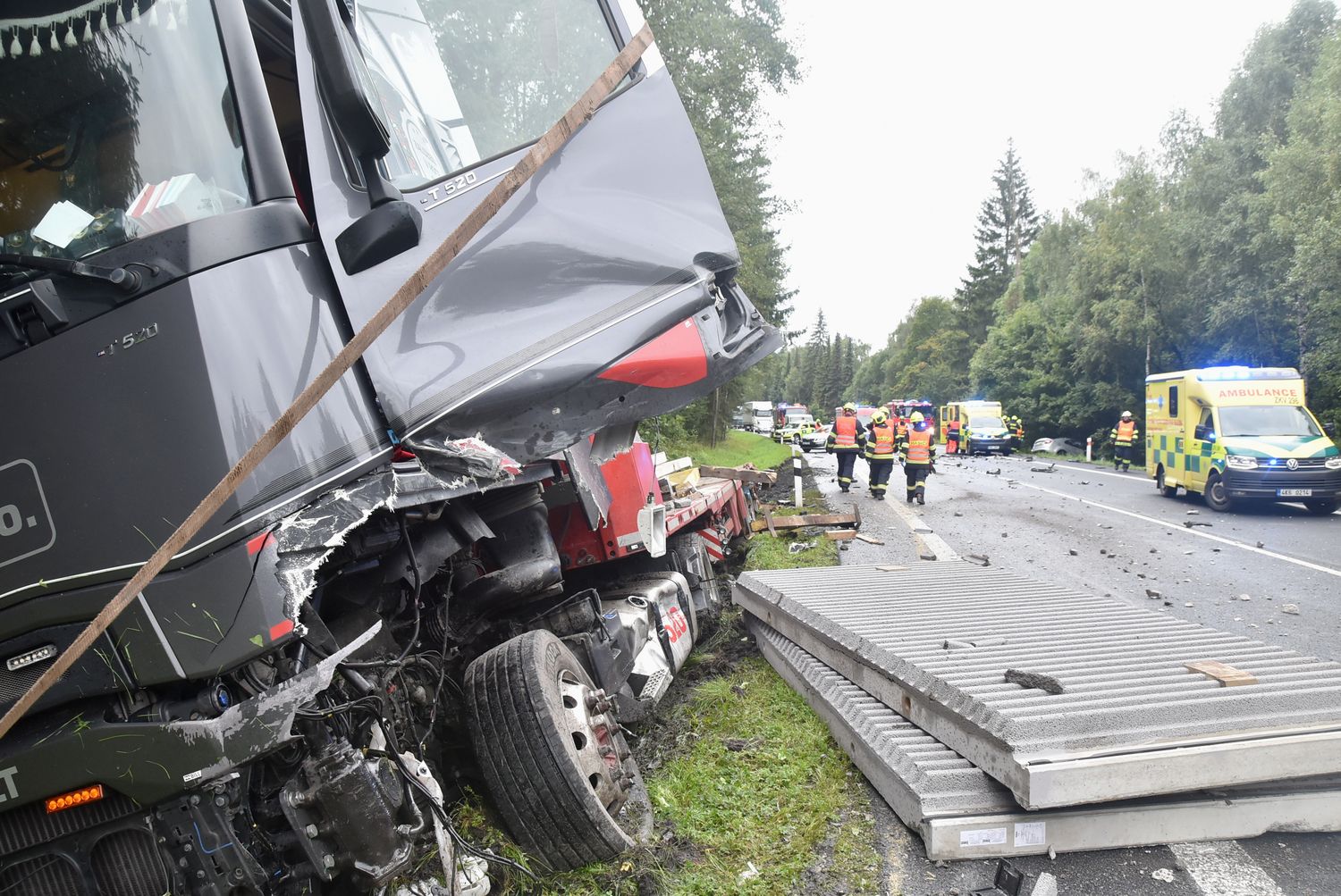 Další velmi vážná dopravní nehoda s tragickými následky se stala na silnici I/6 v pondělí odpoledne v místech za odbočkou na Olšová Vrata. Čelně se zde střetlo osobní auto s nákladním, které převáželo betonové panely. Po srážce zůstal v osobním autě zaklíněný řidič.