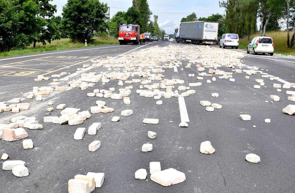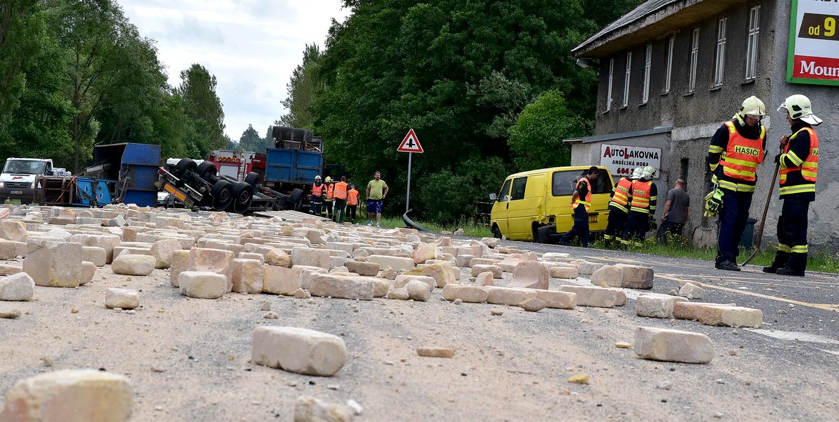 Návěs nákladního auta se převrátil v pondělí, 10.7. 2017 dopoledne na silnici č. 6 z Karlových Varů na Prahu. Nehoda se stala u odbočky na Andělskou Horu. Z přívěsu nákladního auta se na vozovku vysypala suť, účastníkem nehody bylo další nákladní auto a dvě osobní auta, která v místě projížděla právě v okamžiku převrácení a nestačila zareagovat na padající cihly z přívěsu. Hasiči zajistili místo nehody, zlikvidovali únik provozních kapalin z převráceného návěsu a stavebního stroje na návěsu, museli rovněž zachytávat provozní kapaliny z proražené nádrže kamionu. Provoz v místě nehody byl několik hodin omezený, během vyprošťování převráceného návěsu pak i zcela uzavřený.