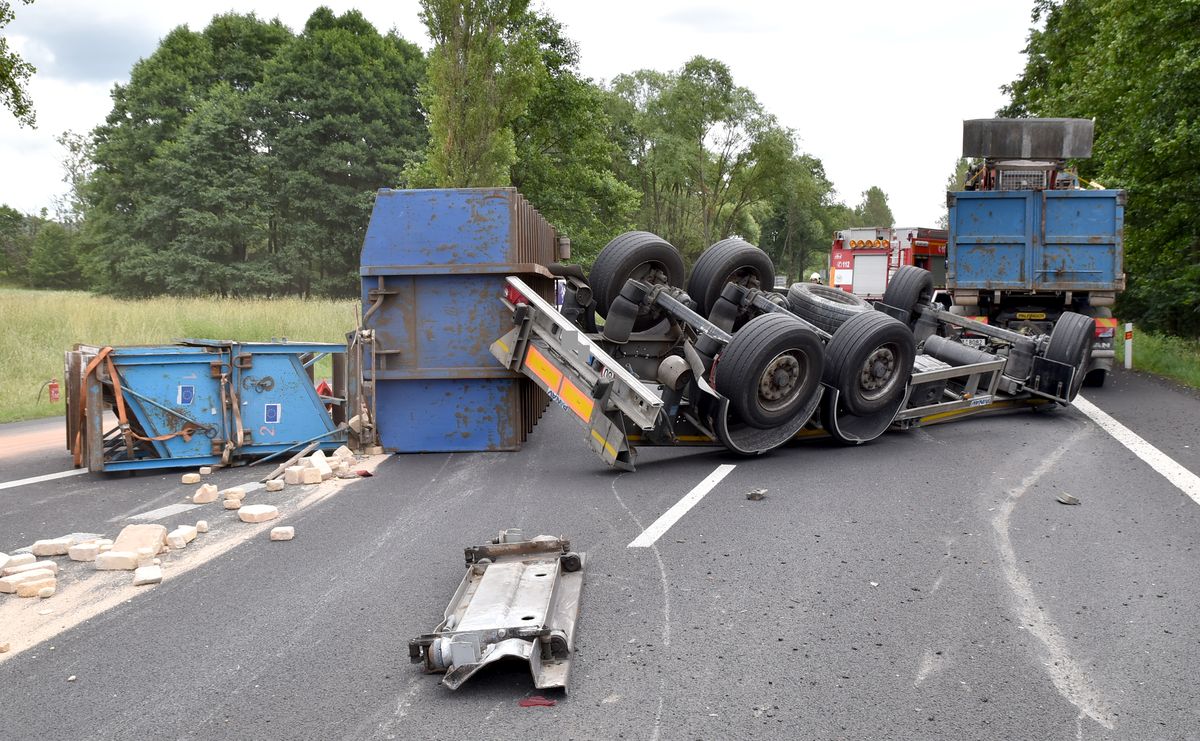 Na silnici u Andělské Hory z Karlových Varů na Prahu se převrátil návěs nákladního auta.Provoz na frekventované silnici byl několik hodin omezený