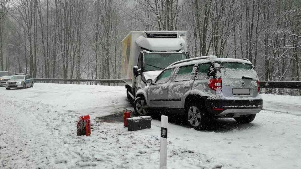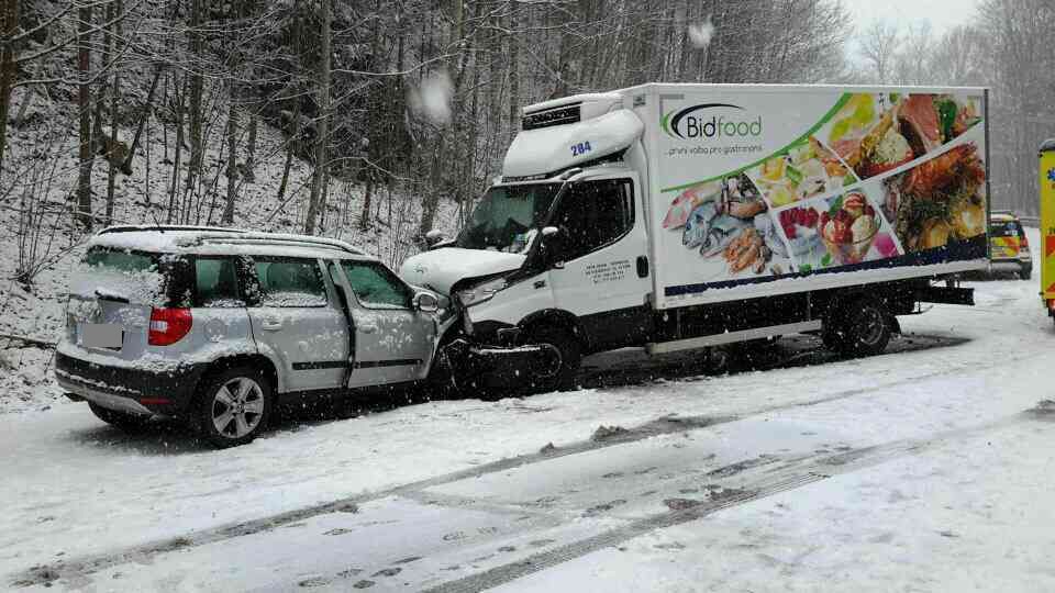 Na zasněžené silnici u Bečova nad Teplou se srazila tři auta  Vážná dopravní nehoda zablokovala v úterý, 20.11.2018, před...