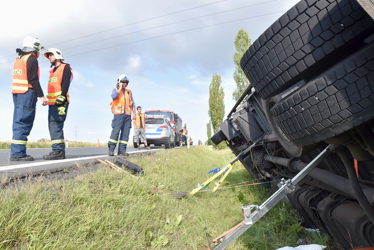 To sjelo mimo vozovku, kde se převrátilo na bok. Na místo vyjeli hasiči ze tří jednotek. Nezraněný řidič dokázal olej1.jpgz kabiny auta vystoupit sám, hasiči tak zajistili místo nehody, stabilizovali převrácené auto proti dalšímu pohybu a zachytávali únik nafty z poškozené nádrže.