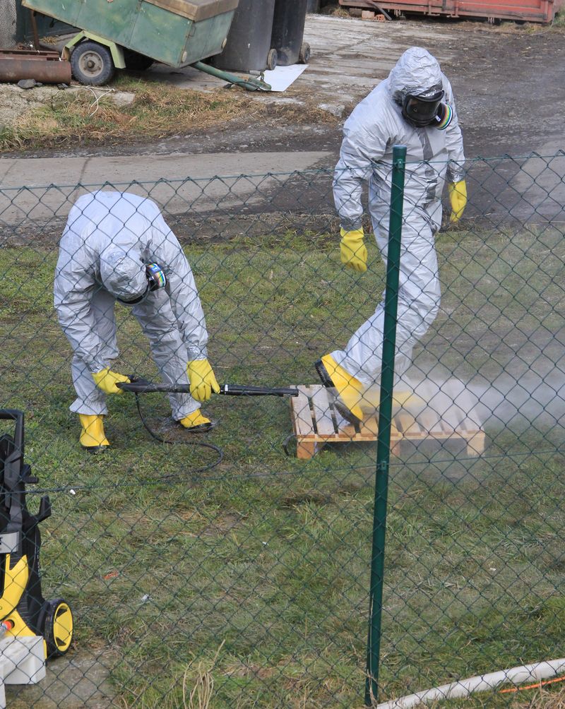 Kvůli potvrzenému výskytu viru chřipky ptáků ve dvou komerčních chovech drůbeže na Chebsku pomáhali hasiči od čtvrtečního rána veterinární správě s likvidací zhruba 34 tisíc kusů drůbeže. Celý zásah byl veden podle standardní typové činnosti pro tento typ zásahu. Protože se jedná o virové onemocnění drůbeže, platí pro všechny zasahující i ostatní osoby pohybující se v místě ohniska režim zvýšené osobní ochrany. A to i přesto, že dosud nebyl nikde prokázán přenos této virové nákazy z ptáka na člověka. Kvůli bezpečnosti zasahujících tak všichni, kteří vstupovali do takzvané nebezpečné zóny, tedy samotných chovů drůbeže, byli vybaveni ochranným oblekem a maskou s filtračními prostředky. Při opouštění chovu museli projít osobní dekontaminací a následně byly použité osobní ochranné prostředky uloženy pro jejích další likvidaci. Dekontaminací musela projít i všechna vozidla opouštějící prostor samotného zásahu.