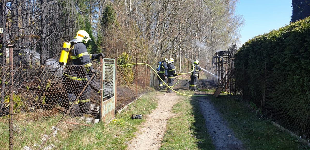 Na tři zahradní chatky se rozšířil požár, který hasičům nahlásili svědci události v Sadově na Karlovarsku ve středu, 17.dubna 2019, odpoledne. Původně hořela jedna dřevěná chatka, oheň se přes kolem rostoucí túje rozšířil i na další dvě chatky a plot.