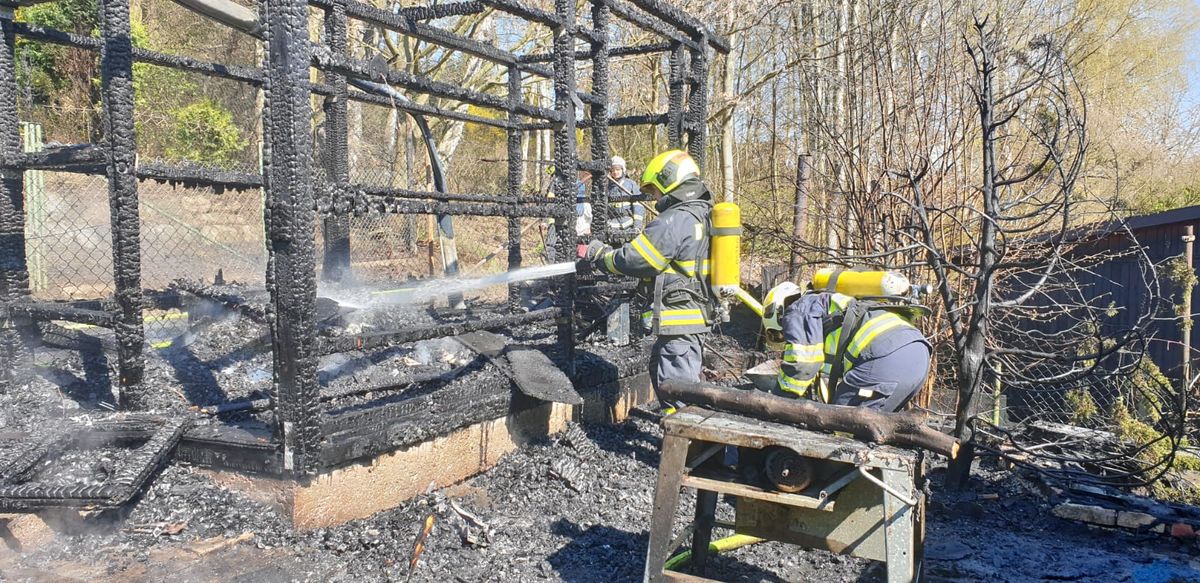 Na tři zahradní chatky se rozšířil požár, který hasičům nahlásili svědci události v Sadově na Karlovarsku ve středu, 17.dubna 2019...
