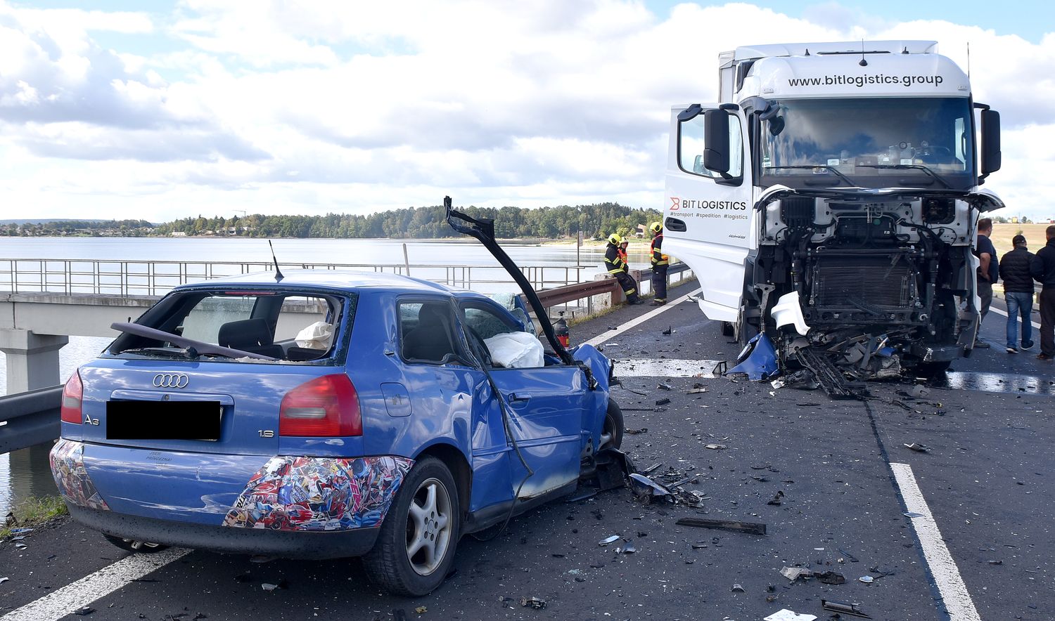 Osobní auto narazilo čelně do kamionu, řidička na místě zemřela