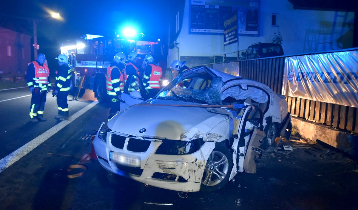 Hasiči museli jednu zraněnou osobu z havarovaného vozidla vyprostit