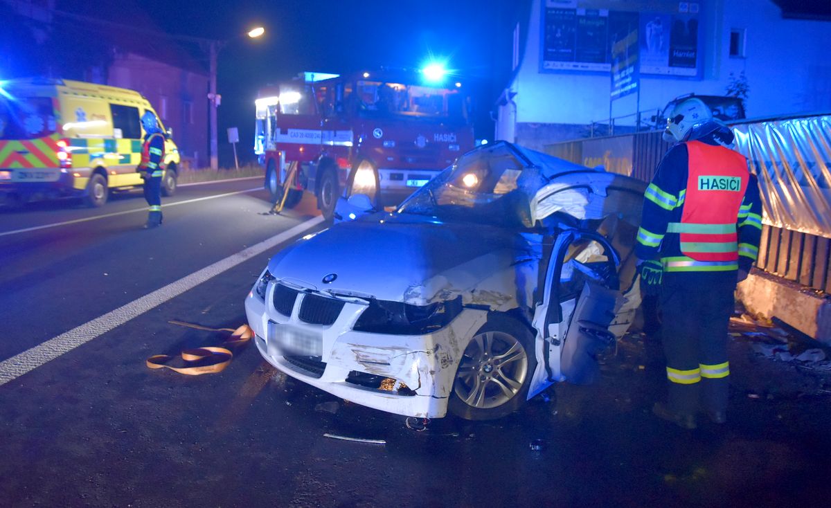 Řidič auta zůstal po nárazu zaklíněný uvnitř, hasiči museli muže vyprostit. Pro jeho transport povolala záchranná služba na místo...