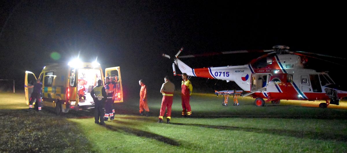 Osobní auto narazilo do zdi, pro řidiče letěl vrtulník