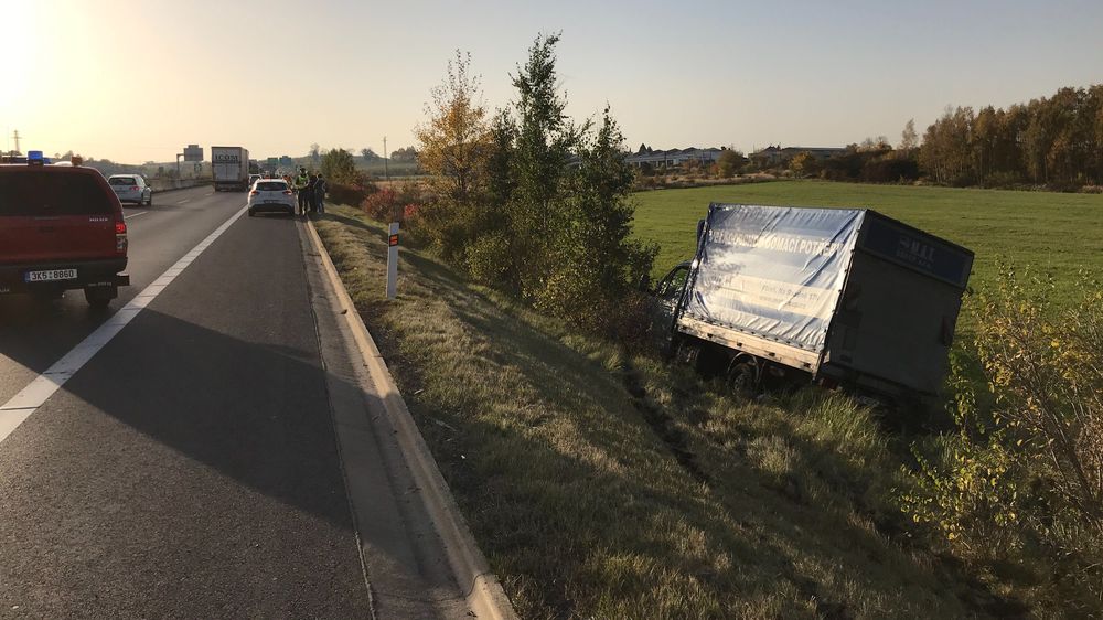 O další kus dál pak havarovalo nákladní auto, které sjelo mimo komunikaci, i zde byl zraněný řidič.