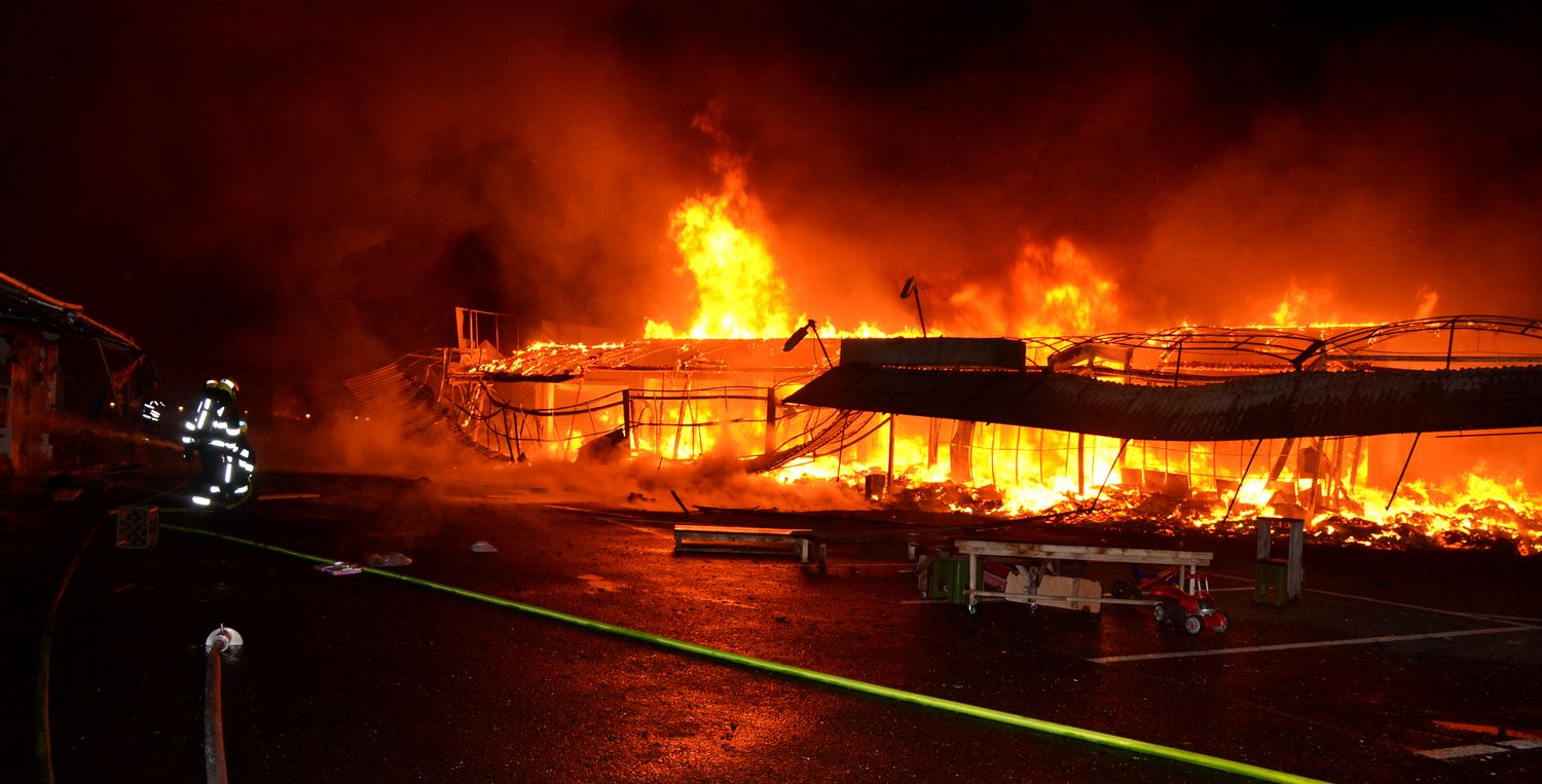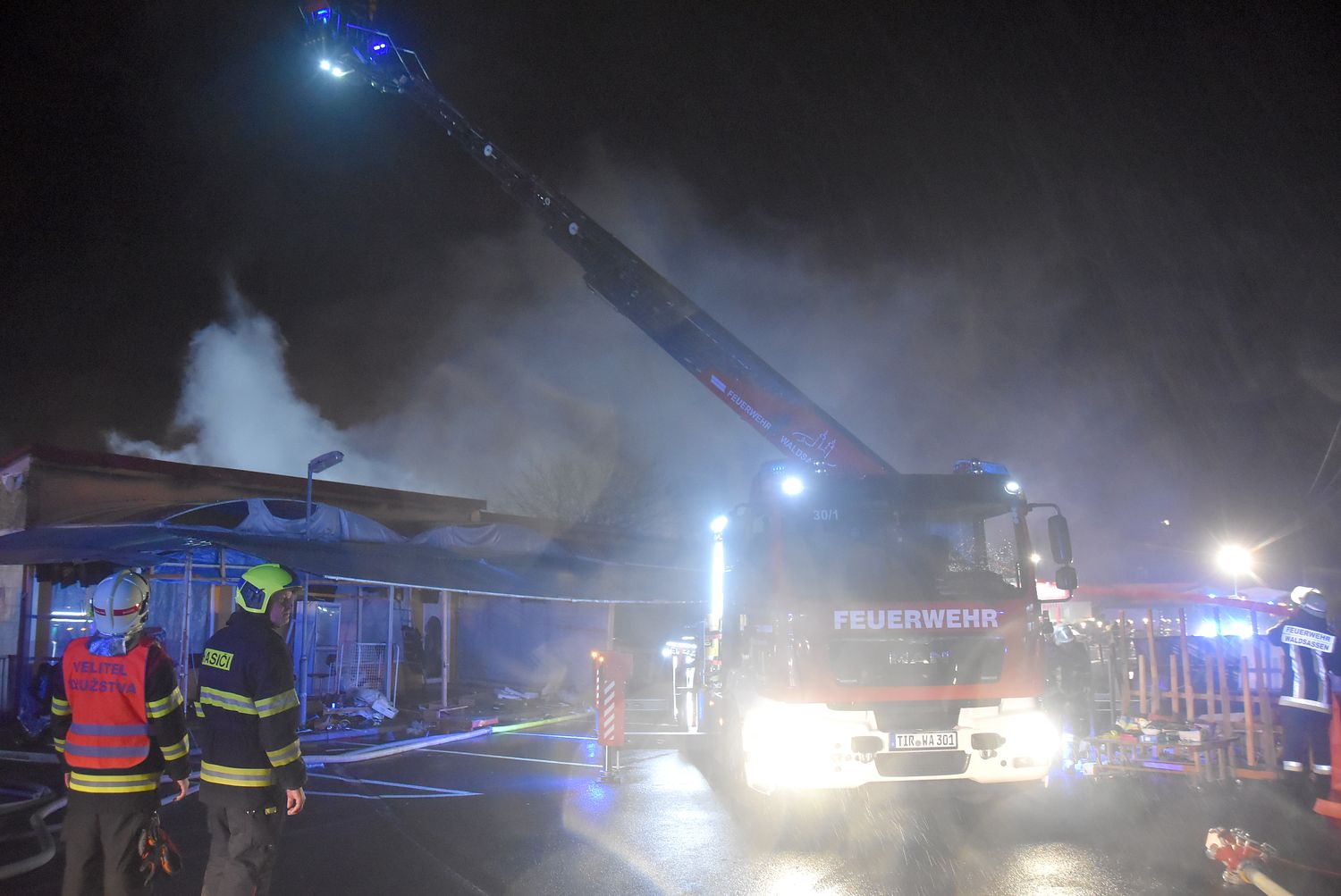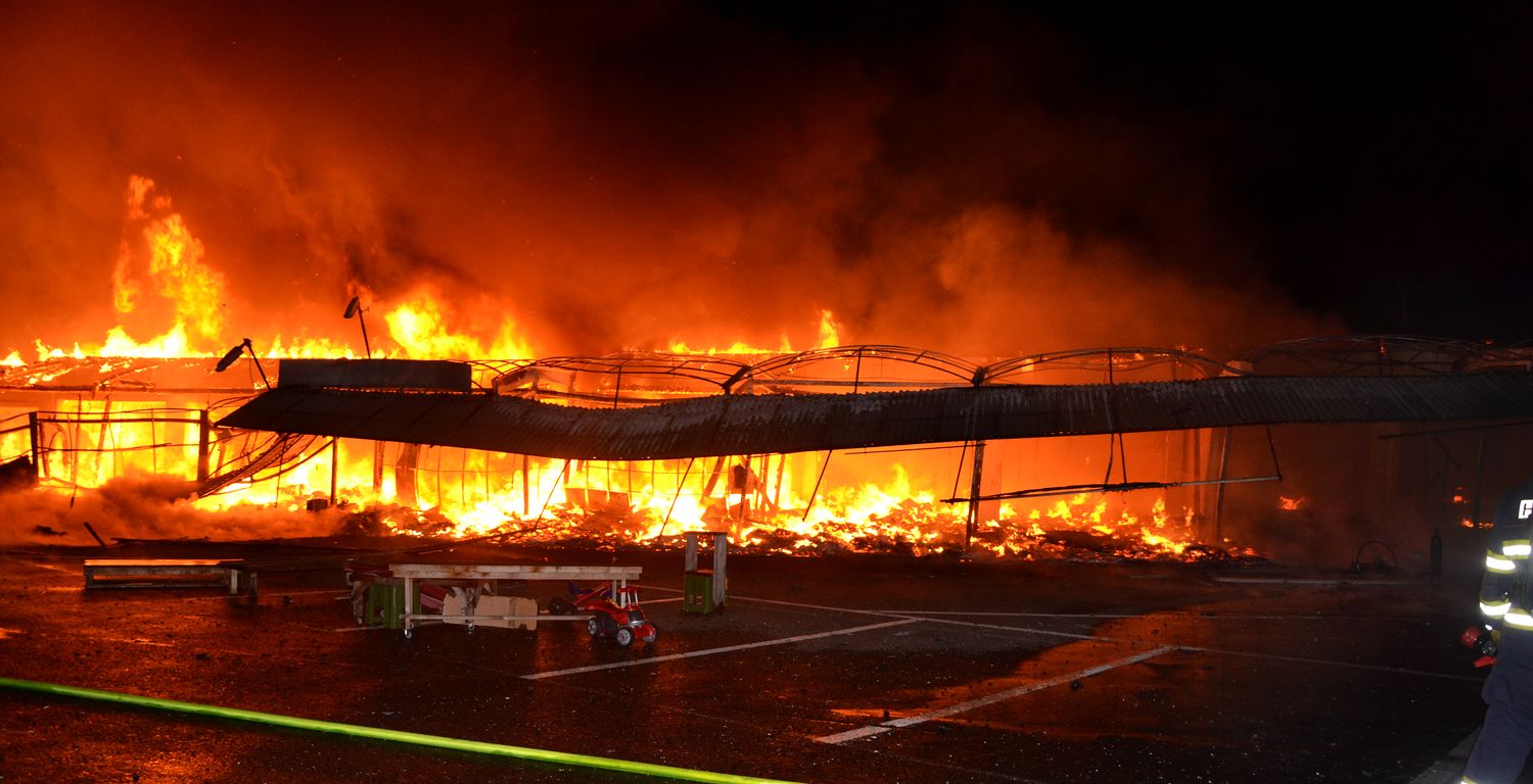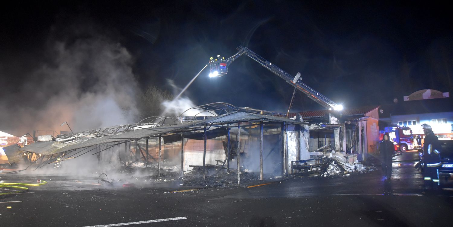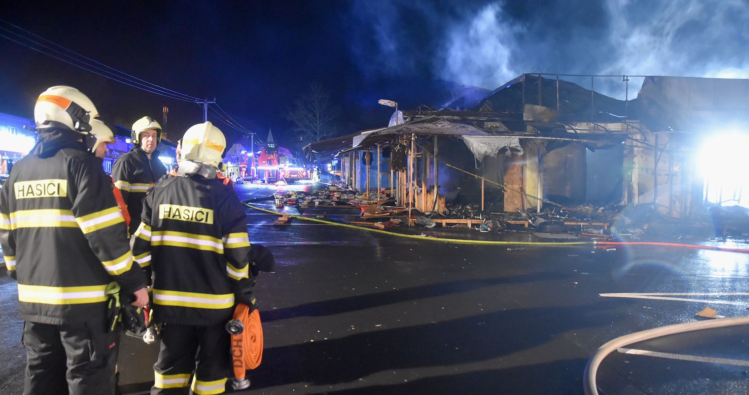 Ostraha areálu tržnice Svatý Kříž u Chebu zpozorovala požár v jednom prodejním stánku krátce před jednou hodinou v noci z pondělí na úterý. Ihned po oznámení na tísňovou linku hasičů vyjeli k požáru jednotky z prvního stupně poplachového plánu. První byli na místě hasiči ze stanice Cheb. V době jejich příjezdu už byla plameny zasažená celá řada stánků v jednom bloku tržnice. Velitel zásahu tak ihned požádal o posilové jednotky, operační středisko rovnou využilo dohody o přeshraniční spolupráci a povolalo na místo také posily z německého Waldsassenu. Vítr stále rozfoukával plameny, které se díky množství hořlavého materiálu ve stáncích snadno šířily, až zasáhly celý jeden blok prodejních stánků, téměř tři desítky stánků. Hasiči se tak kromě likvidace požáru zaměřily na ochranu okolních bloků se stánky, restaurace a dalších obchodů. Během hašení došlo k minimálně čtyřem explozím tlakových lahví, které byly v hořících stáních. Zásah komplikoval také nedostatek požární vody na místě události. V areálu tržnice jsou dvě nádrže na požární vodu, nedostatečný tlak omezoval dostatečnou dodávku vody. Po třech hodinách dostali hasiči požár pod kontrolu a bylo možné některé jednotky hasičů poslat zpět na základny. Na místě po celou dobu zůstala jednotka z Chebu, bylo nutné rozhrabávat a rozebírat požářiště a vyhledávat skrytá ohniska. V dopoledních hodinách se na místo požáru vrátili vyšetřovatelé, kteří zjišťují, proč začalo hořet a jaká vznikla škoda.