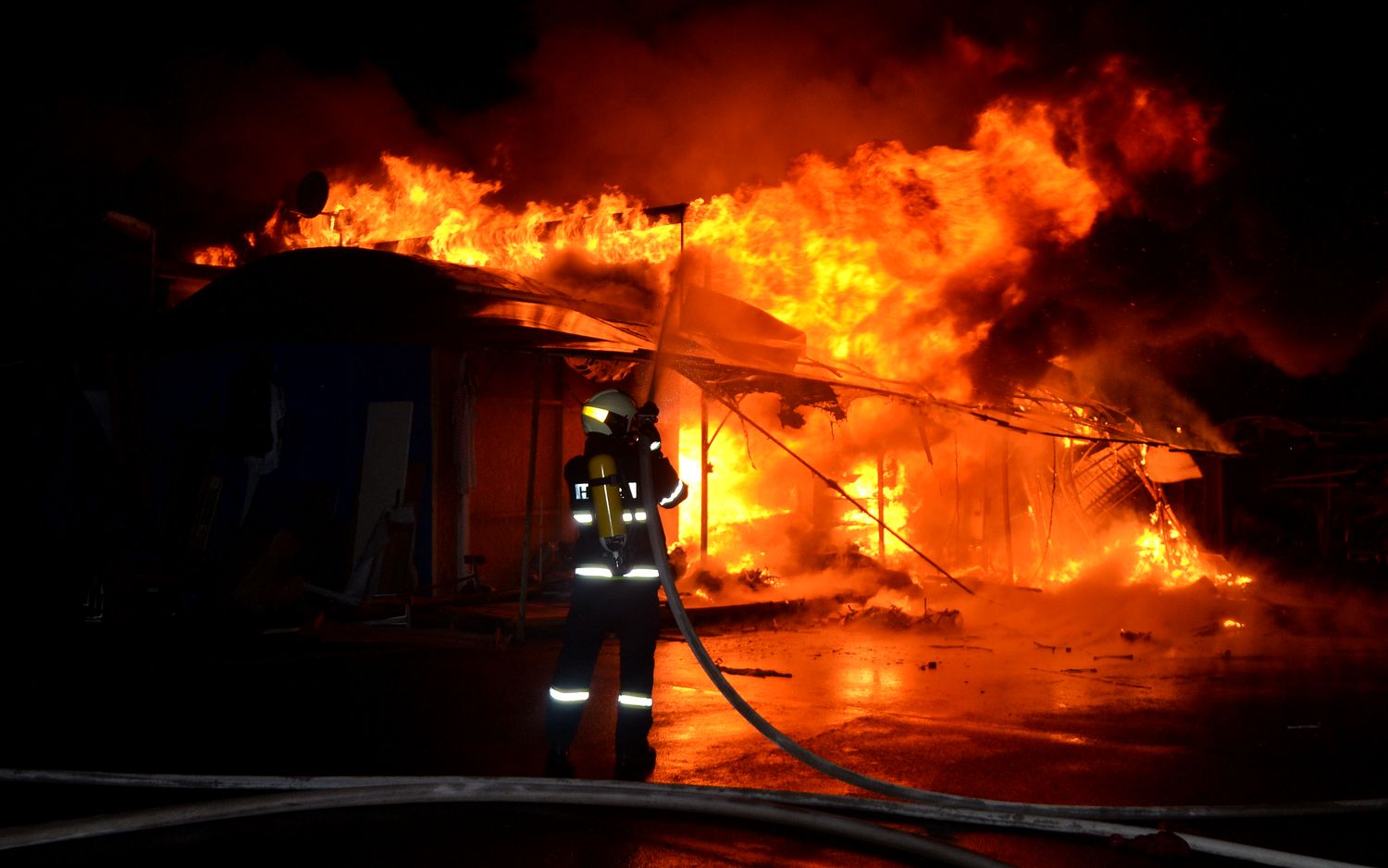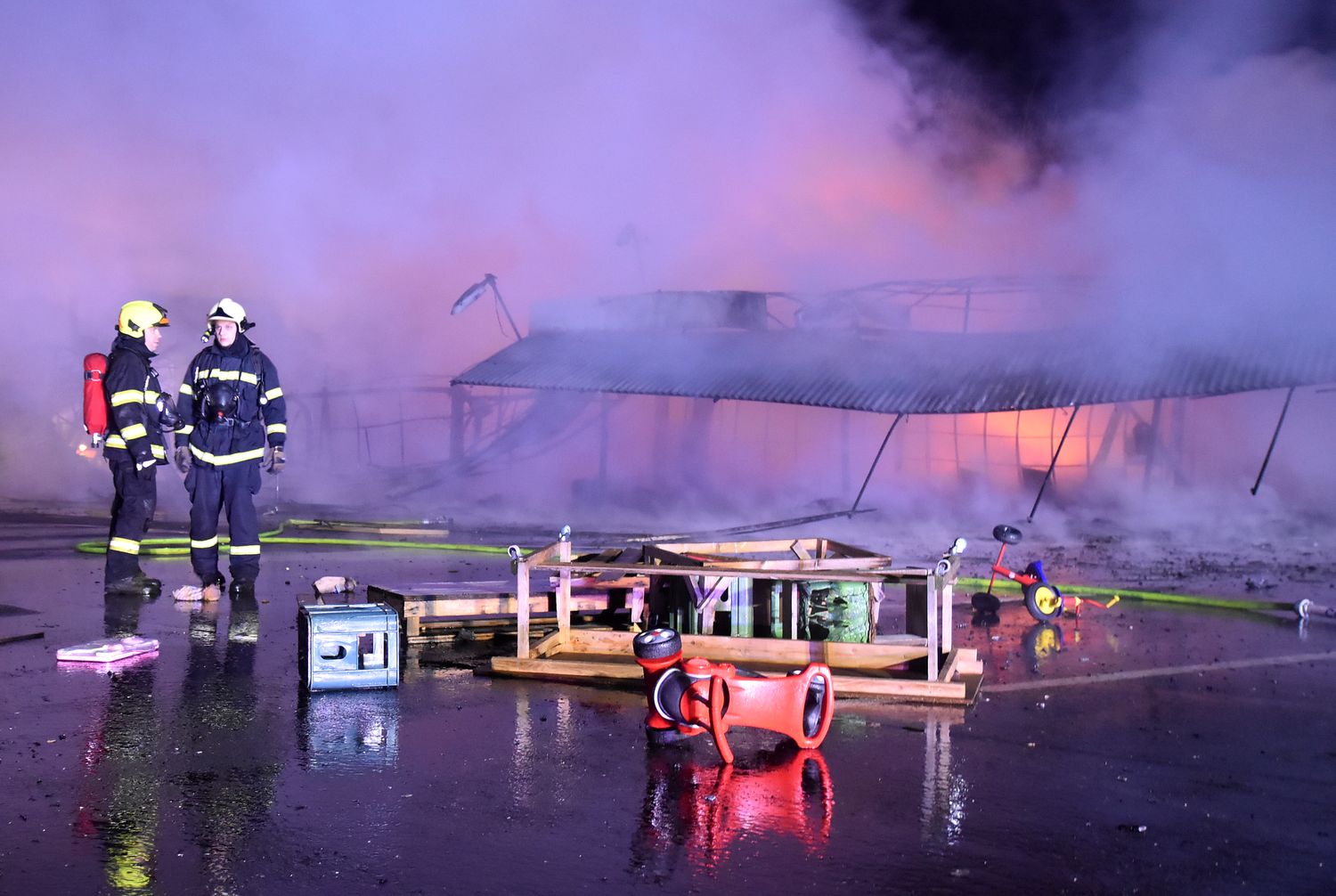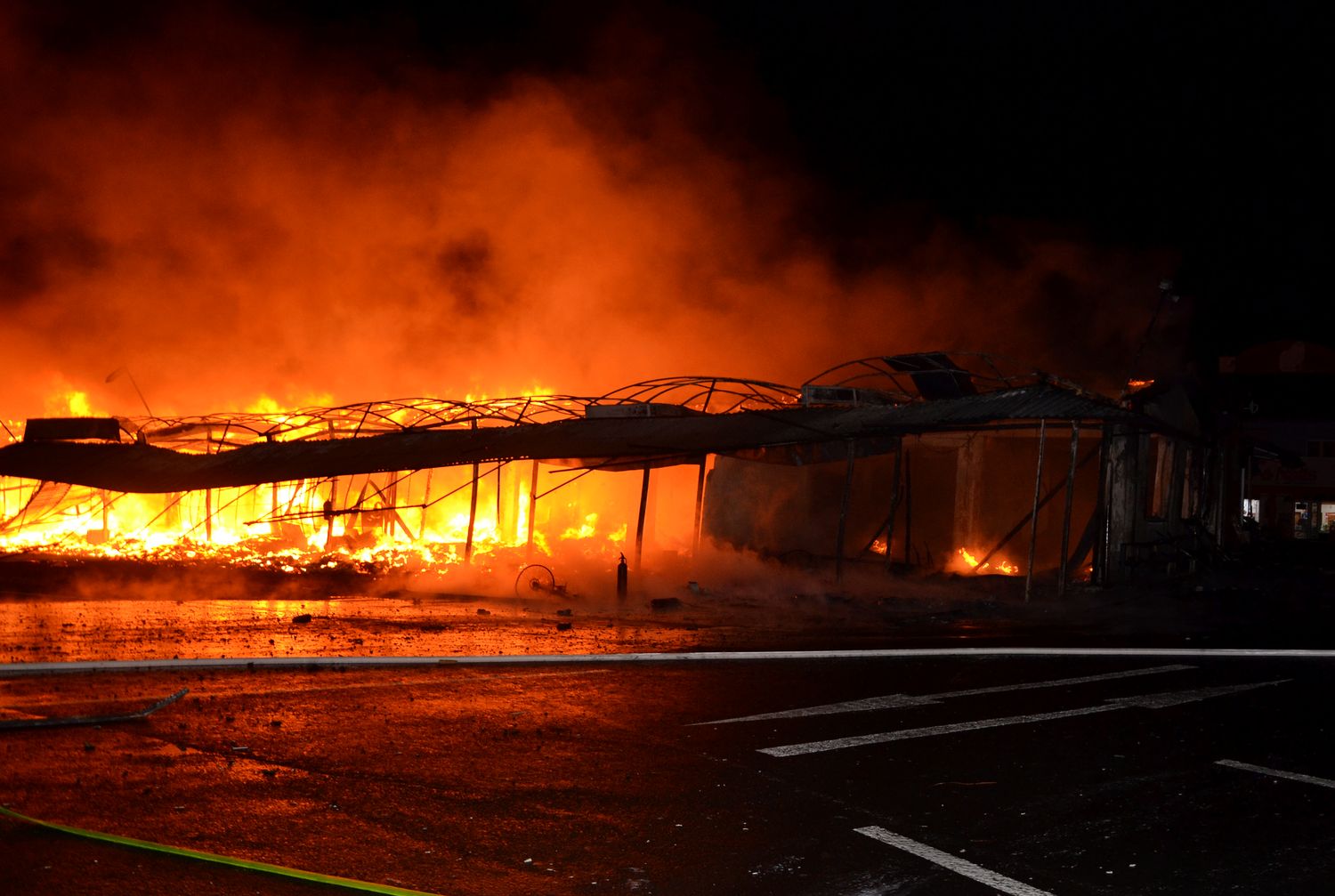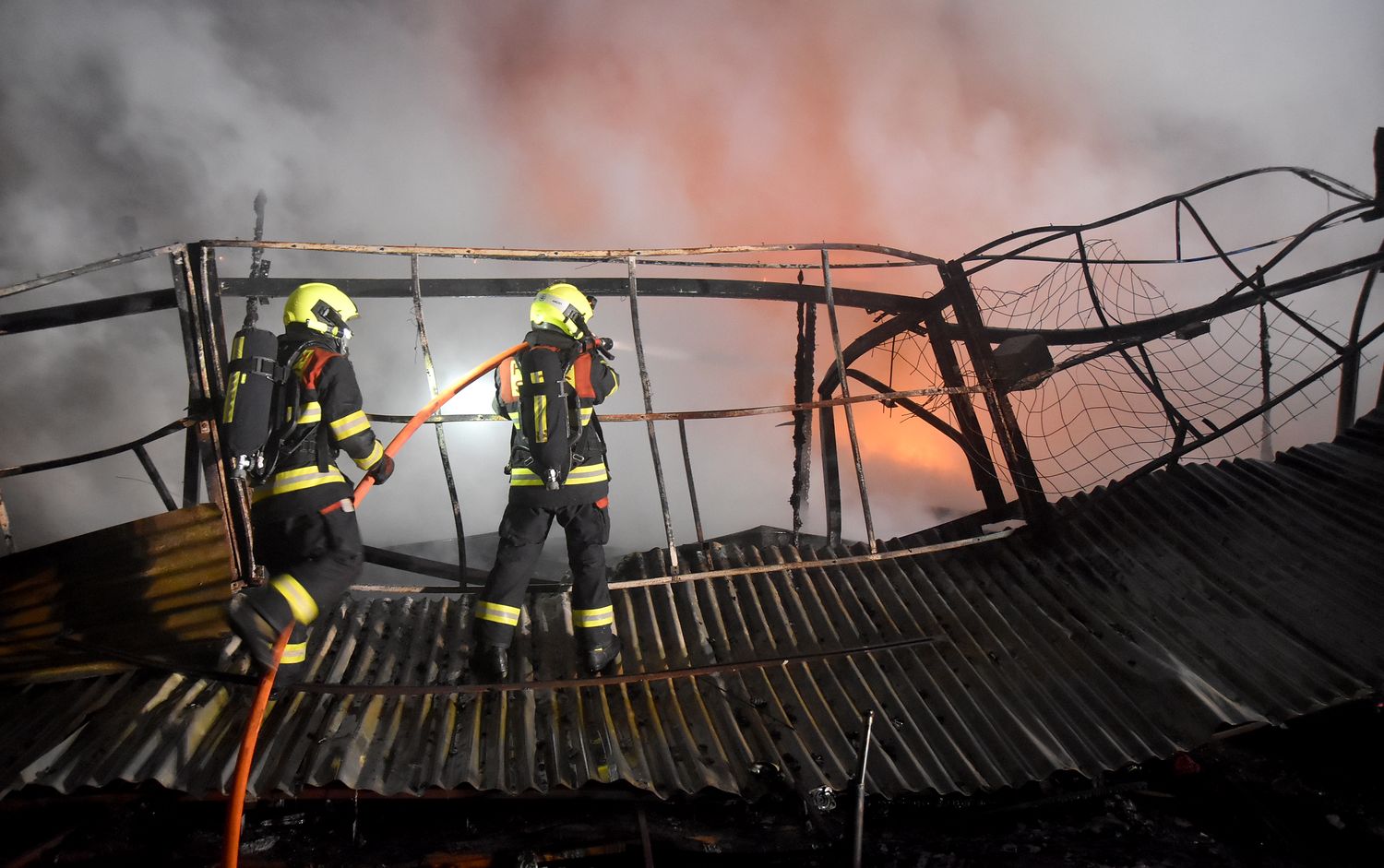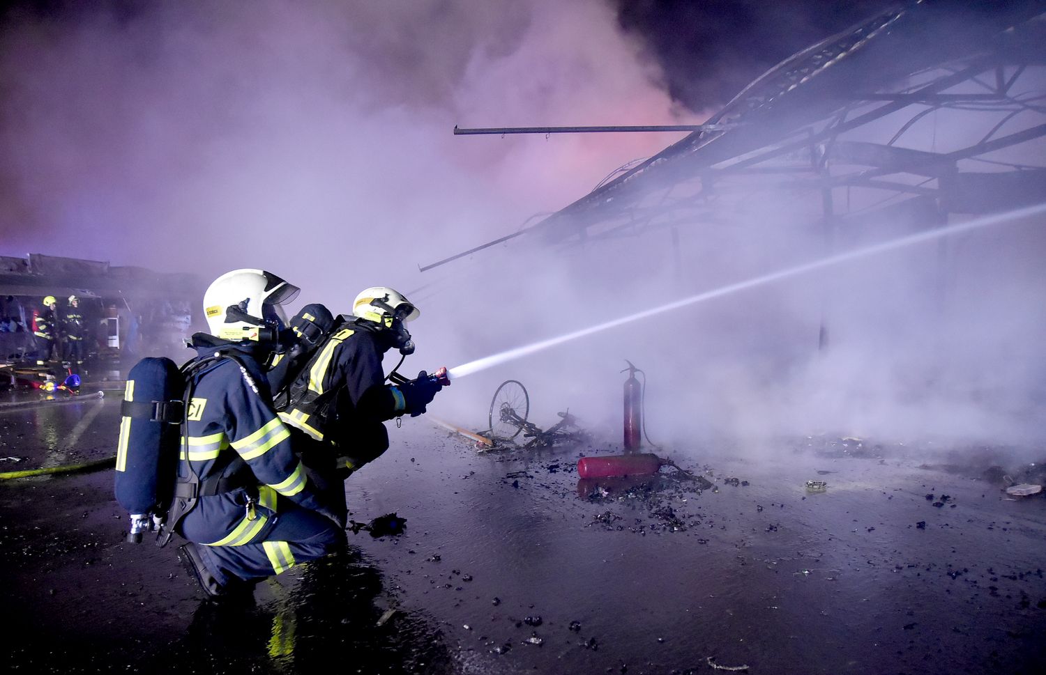 Ostraha areálu tržnice Svatý Kříž u Chebu zpozorovala požár v jednom prodejním stánku krátce před jednou hodinou v noci z pondělí na úterý. Ihned po oznámení na tísňovou linku hasičů vyjeli k požáru jednotky z prvního stupně poplachového plánu. První byli na místě hasiči ze stanice Cheb. V době jejich příjezdu už byla plameny zasažená celá řada stánků v jednom bloku tržnice. Velitel zásahu tak ihned požádal o posilové jednotky, operační středisko rovnou využilo dohody o přeshraniční spolupráci a povolalo na místo také posily z německého Waldsassenu. Vítr stále rozfoukával plameny, které se díky množství hořlavého materiálu ve stáncích snadno šířily, až zasáhly celý jeden blok prodejních stánků, téměř tři desítky stánků. Hasiči se tak kromě likvidace požáru zaměřily na ochranu okolních bloků se stánky, restaurace a dalších obchodů. Během hašení došlo k minimálně čtyřem explozím tlakových lahví, které byly v hořících stáních. Zásah komplikoval také nedostatek požární vody na místě události. V areálu tržnice jsou dvě nádrže na požární vodu, nedostatečný tlak omezoval dostatečnou dodávku vody. Po třech hodinách dostali hasiči požár pod kontrolu a bylo možné některé jednotky hasičů poslat zpět na základny. Na místě po celou dobu zůstala jednotka z Chebu, bylo nutné rozhrabávat a rozebírat požářiště a vyhledávat skrytá ohniska. V dopoledních hodinách se na místo požáru vrátili vyšetřovatelé, kteří zjišťují, proč začalo hořet a jaká vznikla škoda.