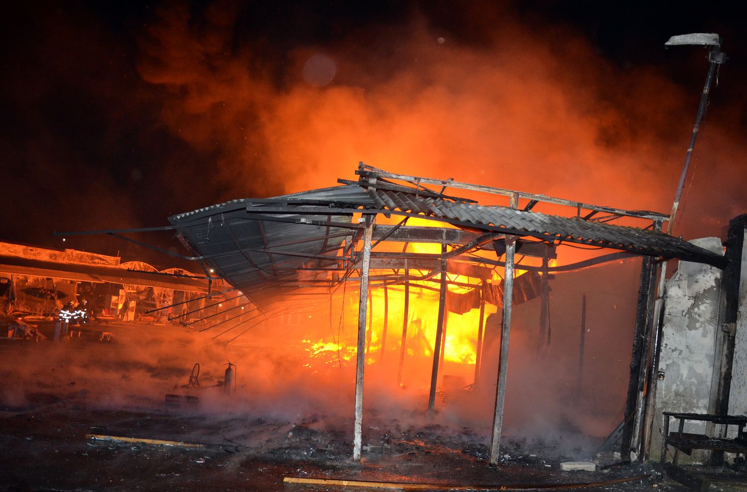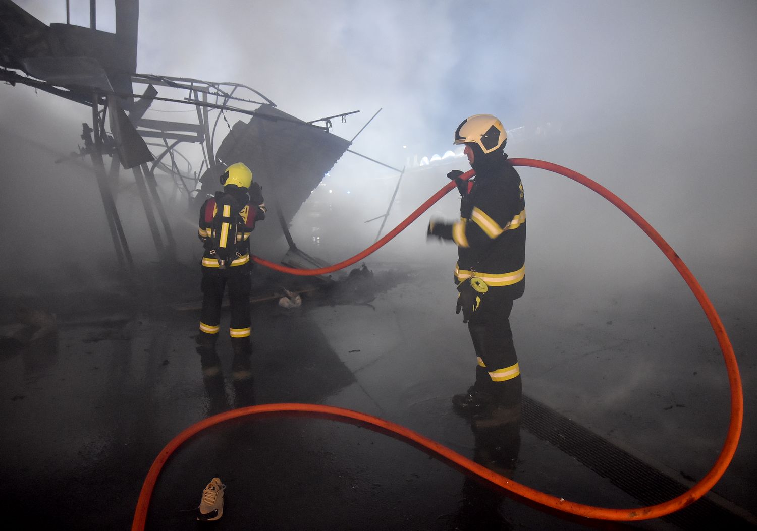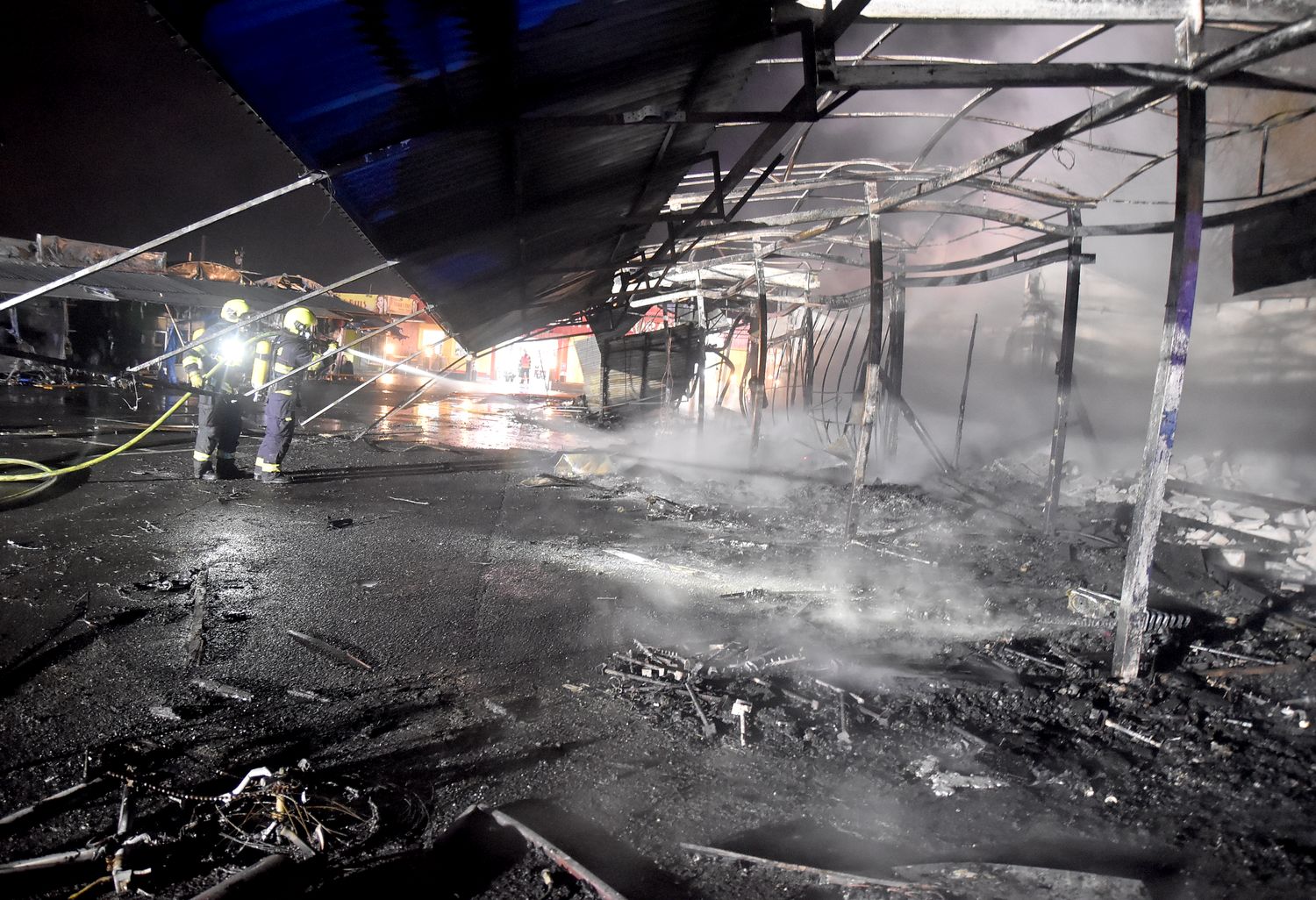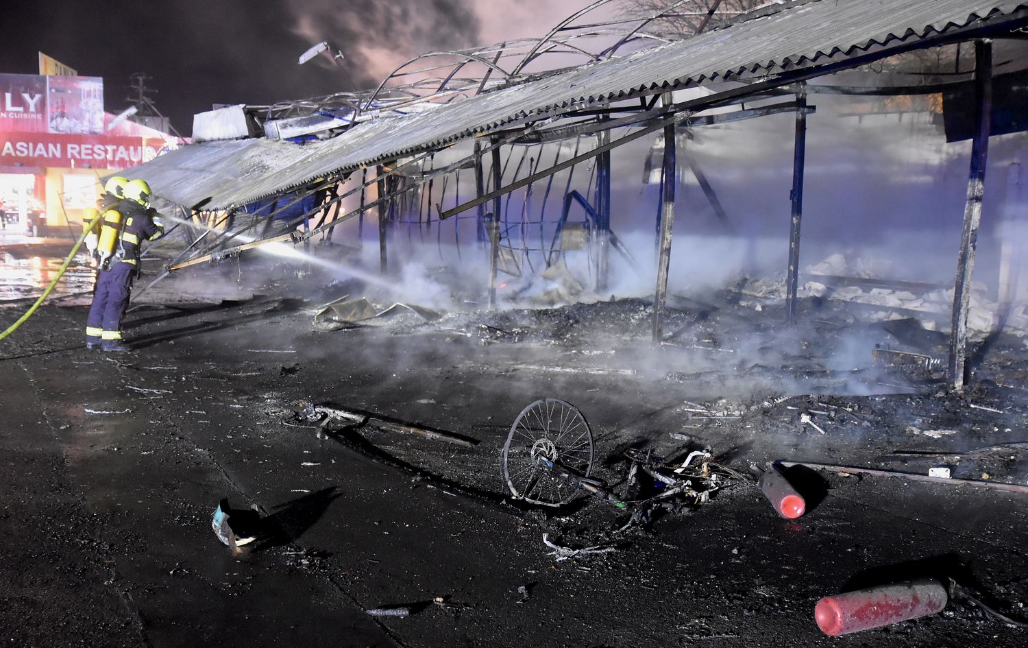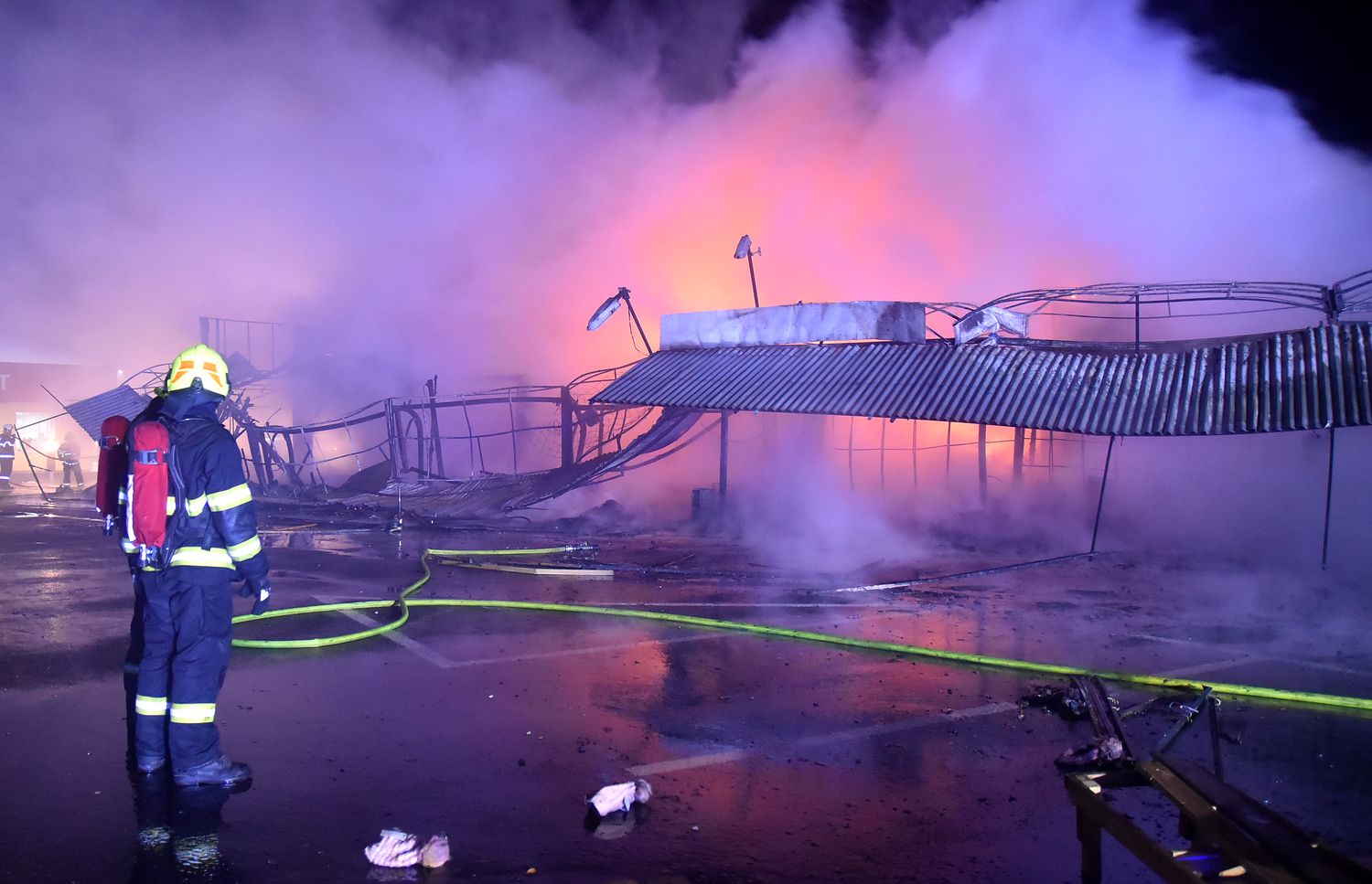 Ostraha areálu tržnice Svatý Kříž u Chebu zpozorovala požár v jednom prodejním stánku krátce před jednou hodinou v noci z pondělí na úterý. Ihned po oznámení na tísňovou linku hasičů vyjeli k požáru jednotky z prvního stupně poplachového plánu. První byli na místě hasiči ze stanice Cheb. V době jejich příjezdu už byla plameny zasažená celá řada stánků v jednom bloku tržnice. Velitel zásahu tak ihned požádal o posilové jednotky, operační středisko rovnou využilo dohody o přeshraniční spolupráci a povolalo na místo také posily z německého Waldsassenu. Vítr stále rozfoukával plameny, které se díky množství hořlavého materiálu ve stáncích snadno šířily, až zasáhly celý jeden blok prodejních stánků, téměř tři desítky stánků. Hasiči se tak kromě likvidace požáru zaměřily na ochranu okolních bloků se stánky, restaurace a dalších obchodů. Během hašení došlo k minimálně čtyřem explozím tlakových lahví, které byly v hořících stáních. Zásah komplikoval také nedostatek požární vody na místě události. V areálu tržnice jsou dvě nádrže na požární vodu, nedostatečný tlak omezoval dostatečnou dodávku vody. Po třech hodinách dostali hasiči požár pod kontrolu a bylo možné některé jednotky hasičů poslat zpět na základny. Na místě po celou dobu zůstala jednotka z Chebu, bylo nutné rozhrabávat a rozebírat požářiště a vyhledávat skrytá ohniska. V dopoledních hodinách se na místo požáru vrátili vyšetřovatelé, kteří zjišťují, proč začalo hořet a jaká vznikla škoda.