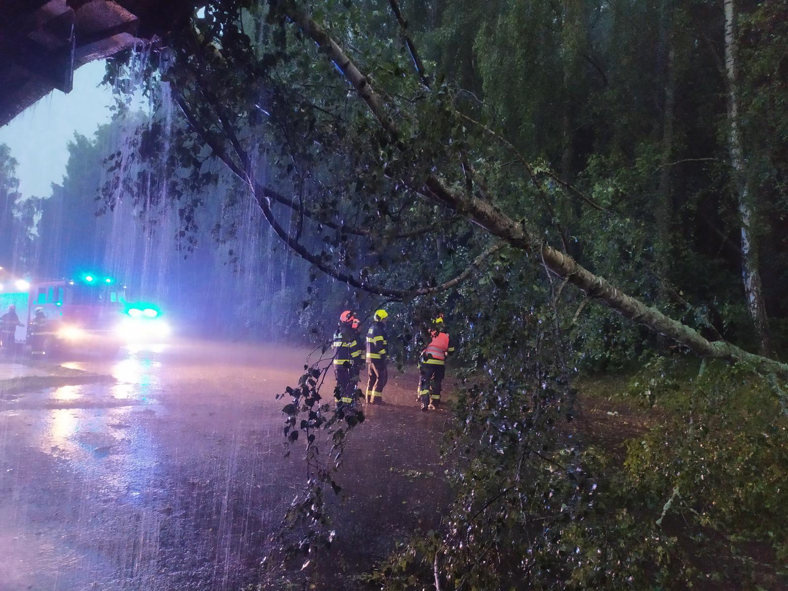 Krátká, ale silná bouřka zaměstnala v úterý večer hasiče ze 36 jednotek