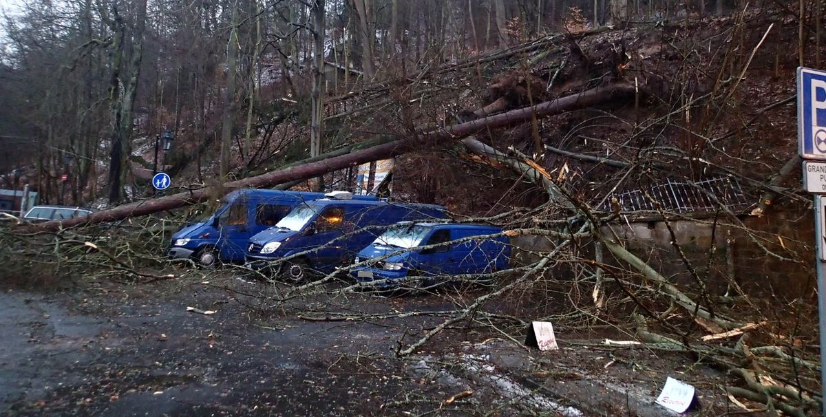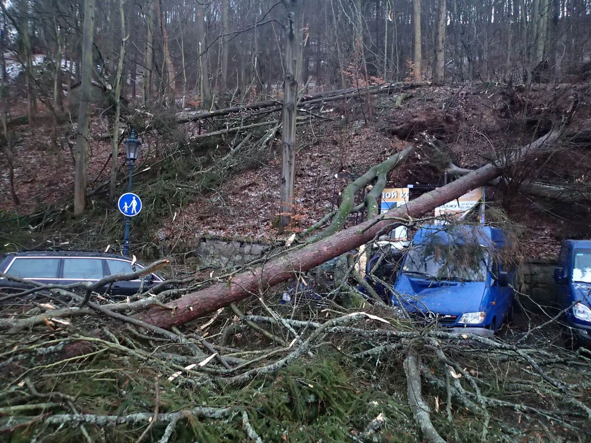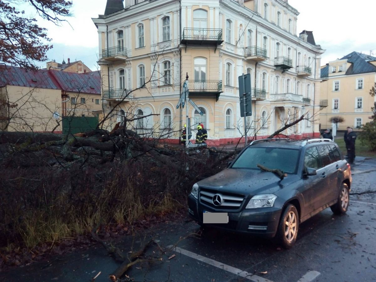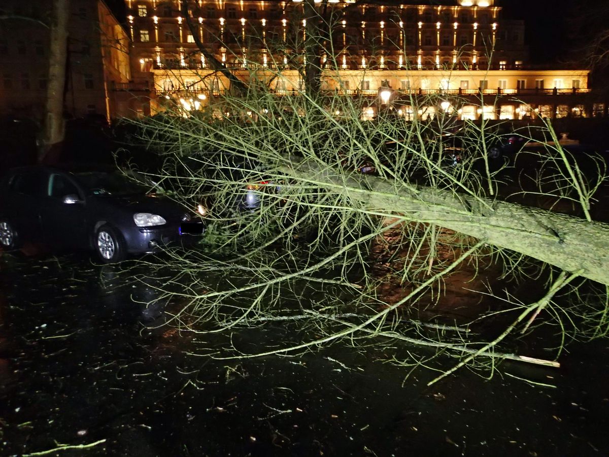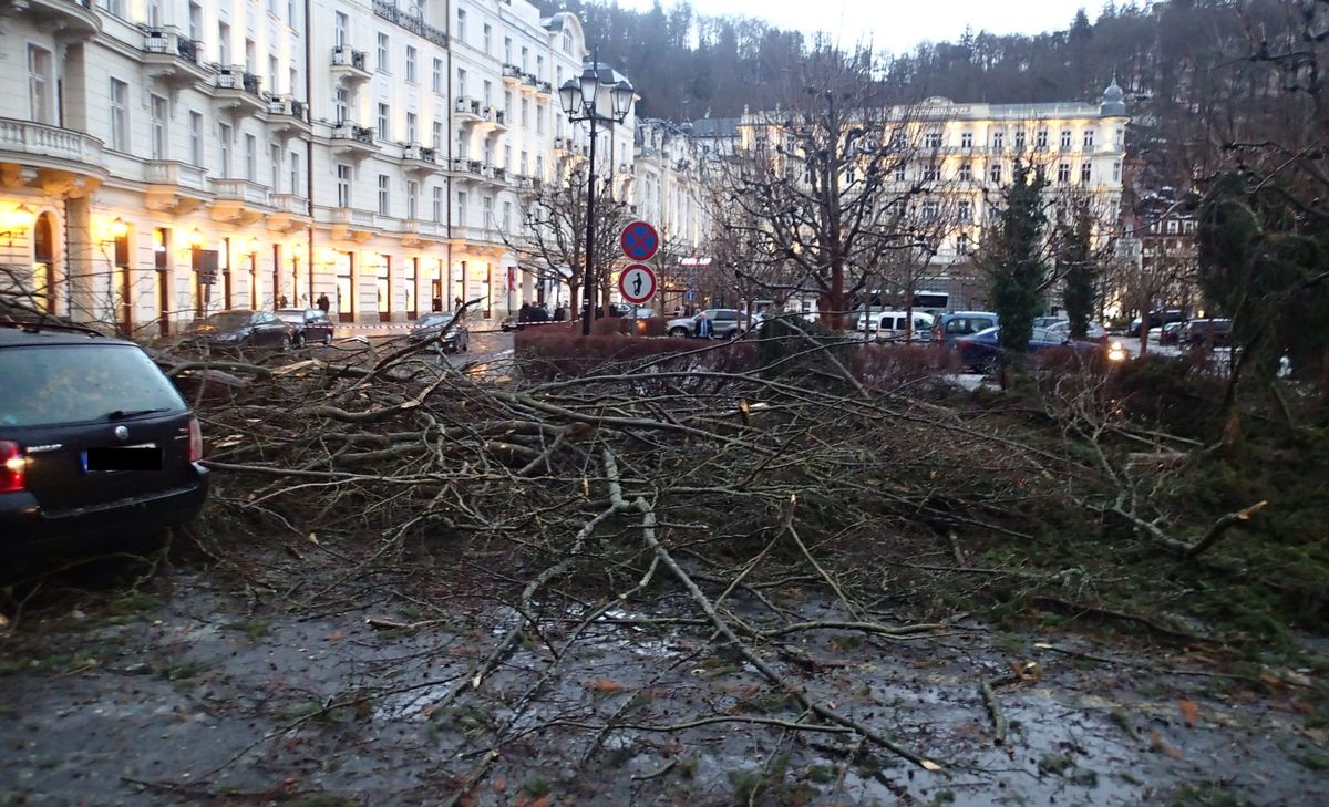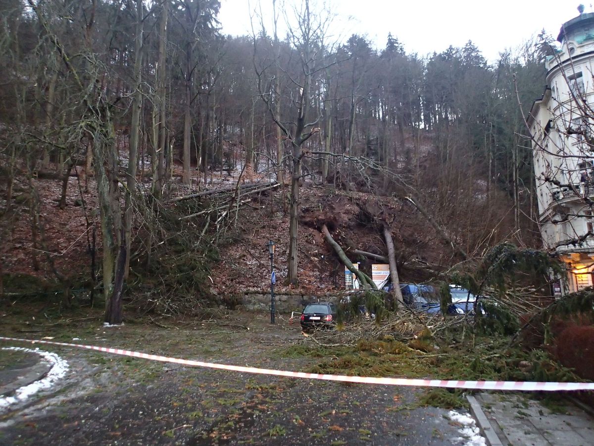 U karlovarského hotelu Pupp se ve svahu nad hotelem vyvrátilo několik vzrostlých stromů, ty pak spadly na dole stojící auta. Hasiči postupně odřezali spadlé stromy, během zásahu bylo okolí hotelu uzavřené pro veškerý provoz.
