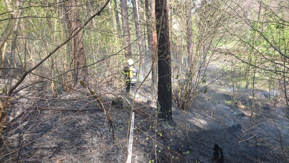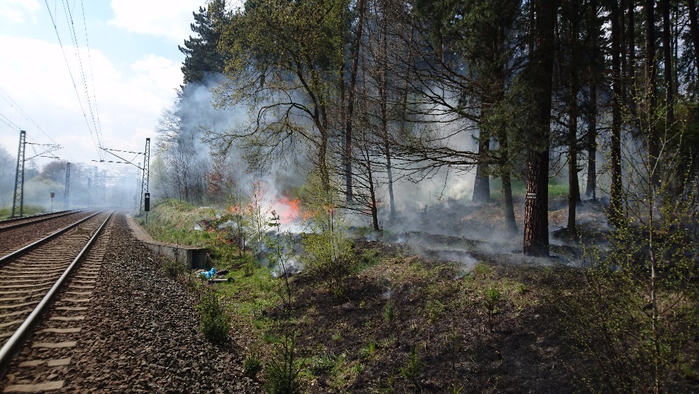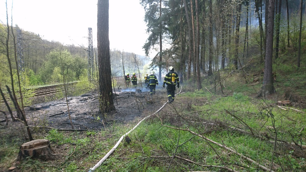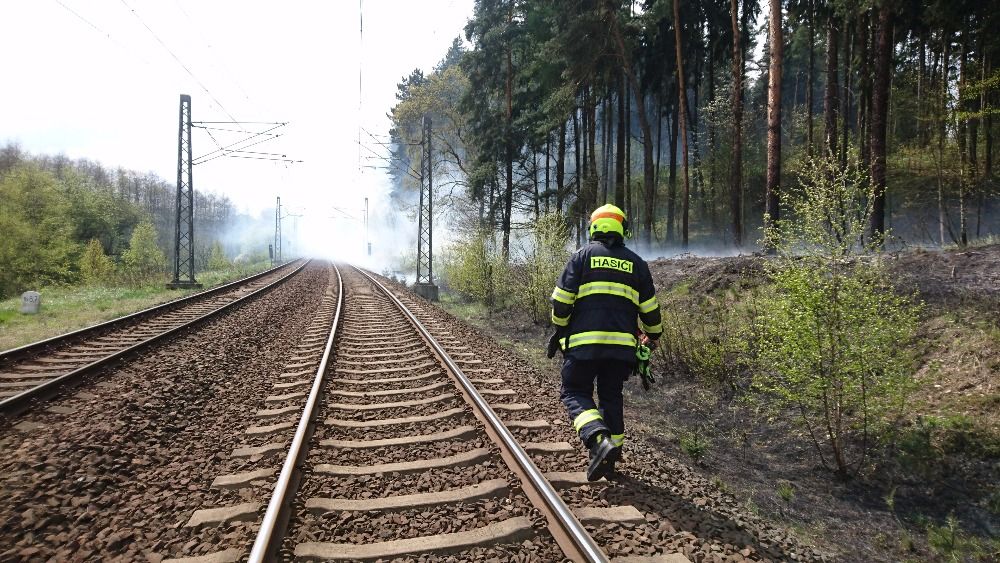 Požár suché trávy a lesní hrabanky kolem železniční tratě z Ostrova směrem na Chomutov likvidovaly v neděli čtyři jednotky hasičů.