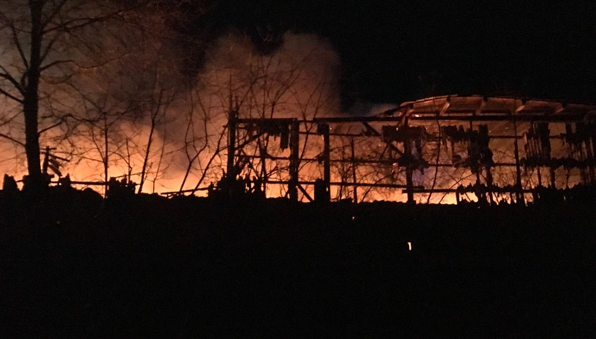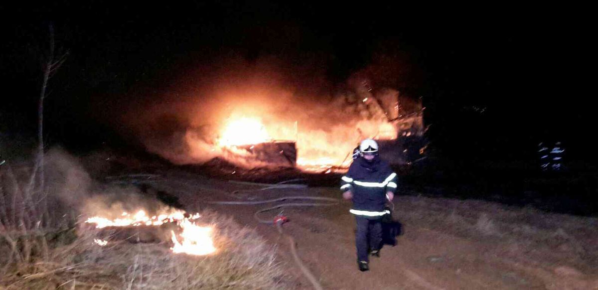 V době příjezdu hasičů na místo události byla požárem zasažený jeden zemědělský objekt o rozměrech 15 x 30 metrů, uvnitř hořely naskladněné pneumatiky a vlivem požáru se již propadla střecha. Hasiči po domluvě s uživatelem nechali již zasaženou část objektu kontrolovaně dohořet, před požárem chránili okolí.