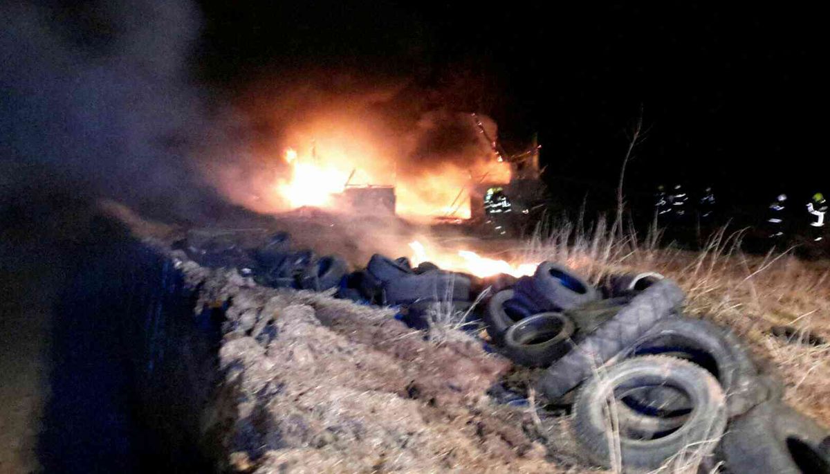Uskladněné pneumatiky v zemědělském objektu v obci Chlum u Pšova na Karlovarská začaly hořet v neděli, 25.2. 2018, v podvečer.