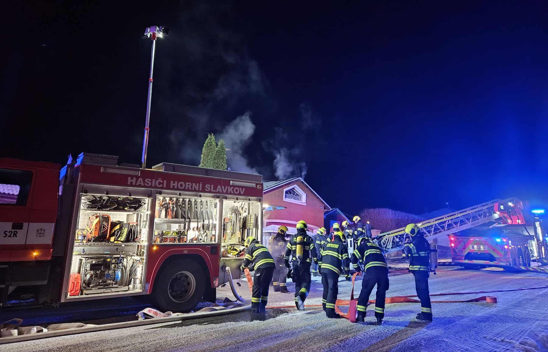 Ve středu 31.12.2025 krátce po půl čtvrté ráno nahlásili obyvatelé rodinného domu v Horním Slavkově požár střechy. Když hasiči dorazili na místo, plameny již prohořívaly střechou a ohrožovaly podkrovní prostory. Událost vyvolala okamžitou aktivaci integrovaného záchranného systému, aby se zabránilo dalšímu šíření požáru.