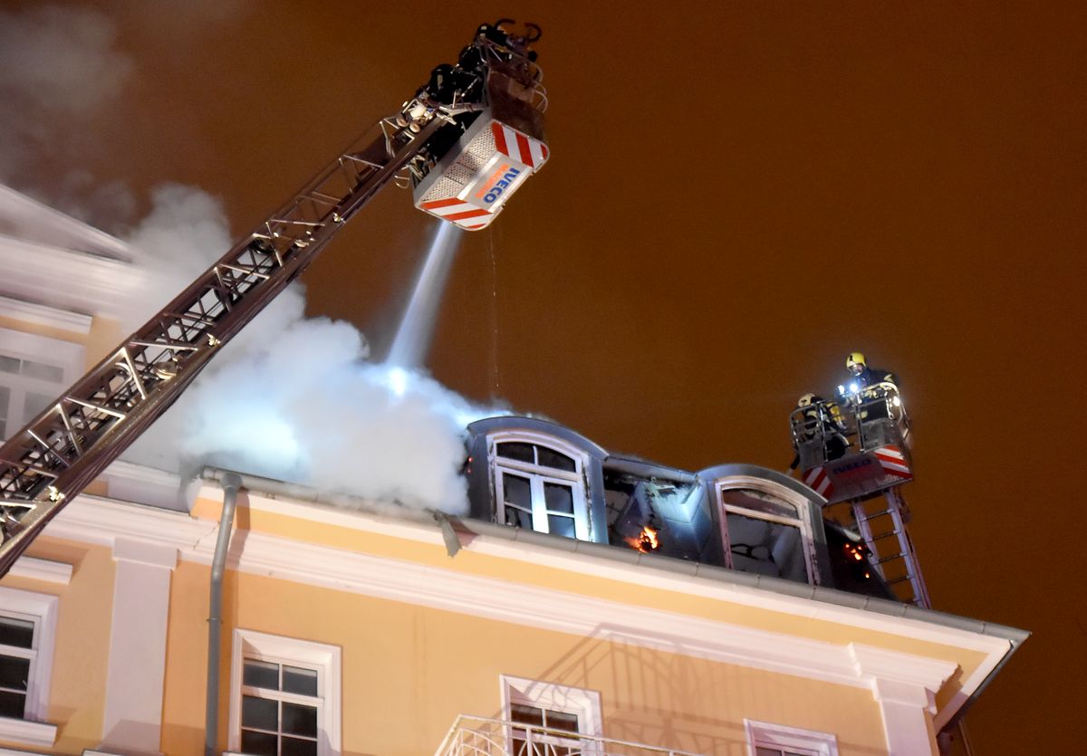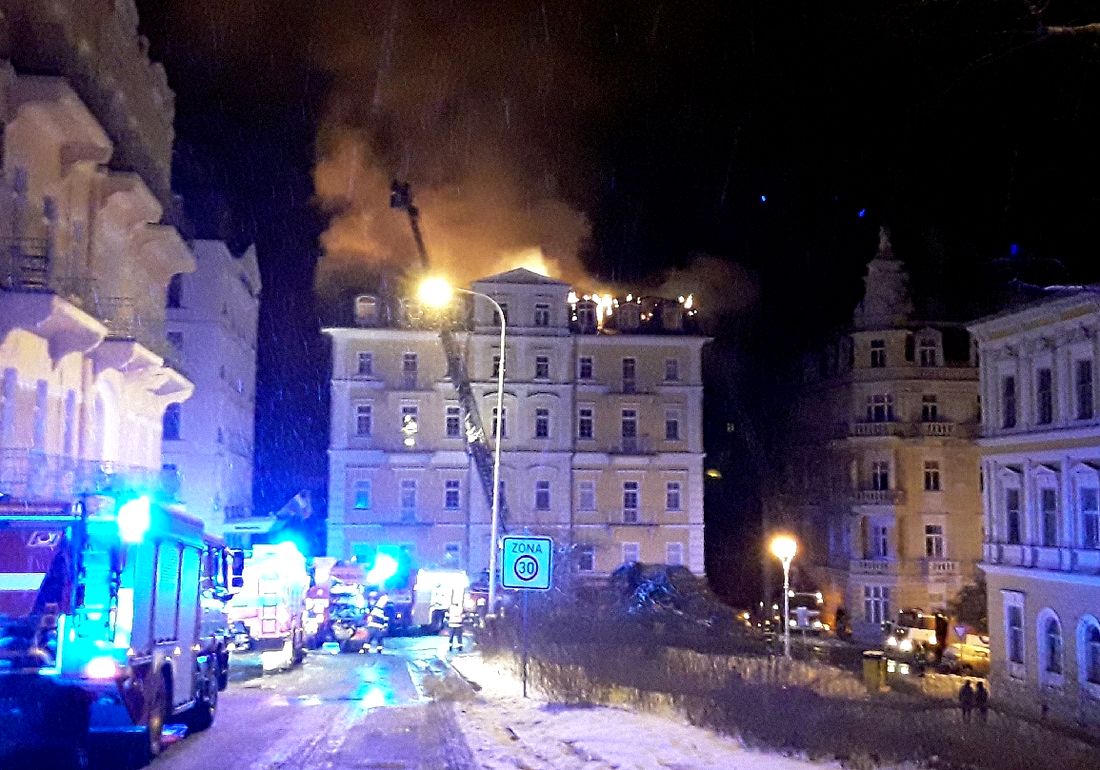 Bytový dům vyhořel v noci z pátku na sobotu v Mariánských Lázních. Hořet začalo v podkroví a oheň zasáhl všech šest bytů a také střechu domu. Hlášené o požáru přijali hasiči na tísňovou linku krátce po třetí hodině ráno. Když na místo dorazila první jednotka ze stanice Mariánské Lázně, hořela již celá střecha pětipatrového domu. Hasiči začali s hasebními pracemi uvnitř domu, z koše automobilového žebříku, zároveň bylo nutné evakuovat obyvatele domu. Těch bylo celkem devět a zázemí našli v recepci vedle stojícího hotelu. Protože v podkrovních bytech se začaly propadat stropy a střecha domu a také s ohledem na místo požáru v centru města si velitel zásahu vyžádal na místo další posilové jednotky včetně další výškové techniky a také vyhlásil třetí stupeň požárního poplachu. Na místě tak zasahovalo dvanáct jednotek hasičů. Plameny se podařilo dostat pod kontrolu až v ranních hodinách, celé dopoledne pak hasiči rozebírali zničené konstrukce v podkroví a dohašovali skrytá ohniska. Odpoledne si místo požáru převzal správce objektu s tím, že je nutné provádět pravidelné kontroly až do neděle.