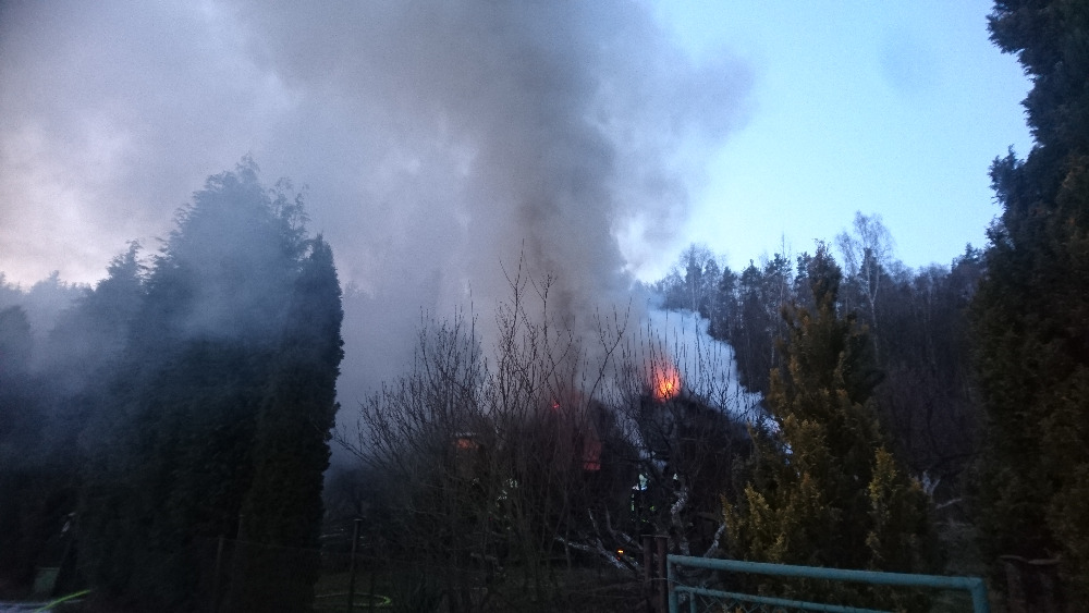 K hlášenému požáru chatky v Sadově u Karlových Varů vyjížděli ve středu, 14.2. 2018, v podvečer hasiči ze tří jednotek. Požár byl vidět na velkou vzdálenost, v době příjezdu hasičů na místo byla již celá chata v plamenech.