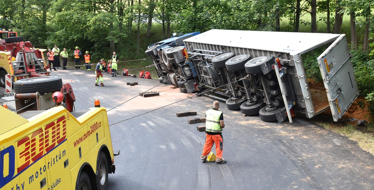 Převrácený kamion blokoval provoz