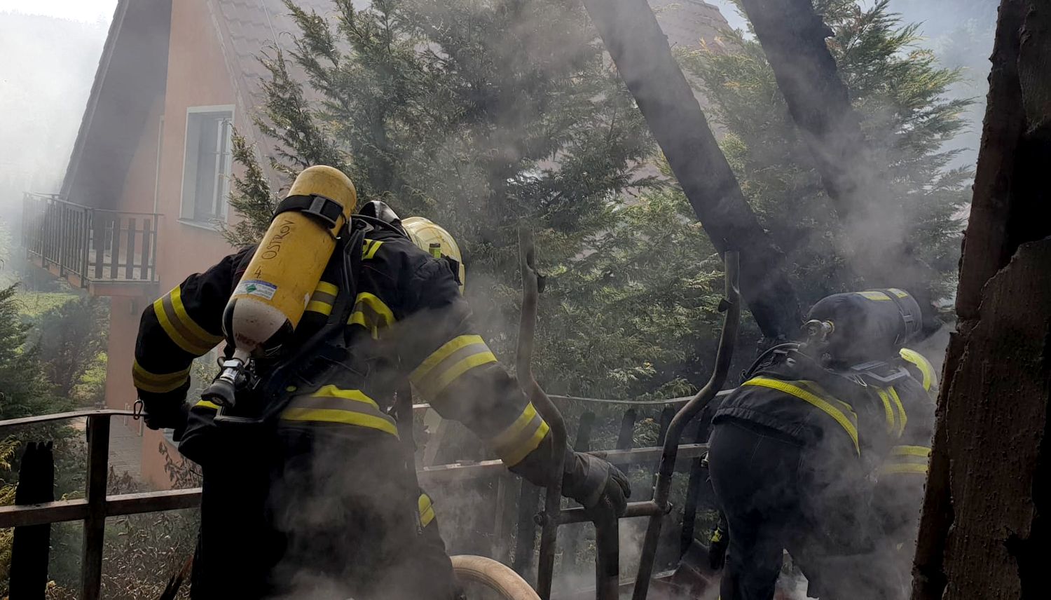 Požár rodinného domu nahlásili svědci z okolí v sobotu odpoledne. Na místo vyslalo operační středisko čtyři jednotky hasičů. Ti potvrdili, že oheň zasáhl horní část objektu včetně střechy. Průzkumem bylo vyloučeno, že by uvnitř domu byly nějaké osoby.