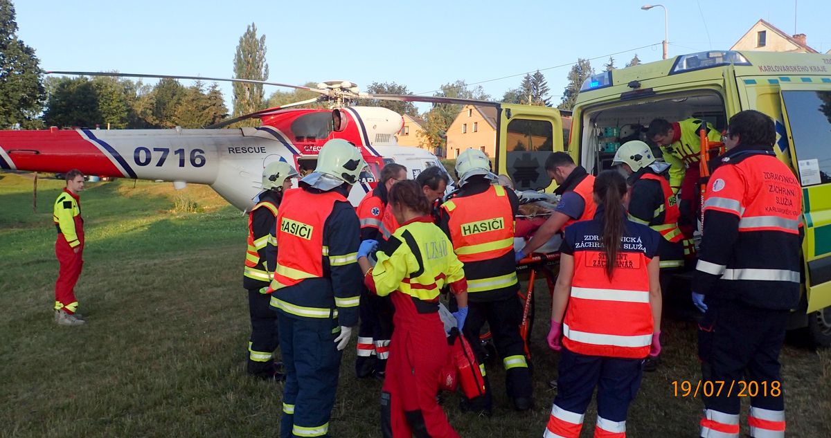 Přivolaní hasiči ze stanice Toužim zajistili na žádost záchranné služby poblíž místa nehody prostor pro přistání vrtulníku, kam následně pomohli transportovat zraněnou ženu. Po odletu vrtulníku zajistili hasiči místo nehody a postarali se o únik provozních kapalin.