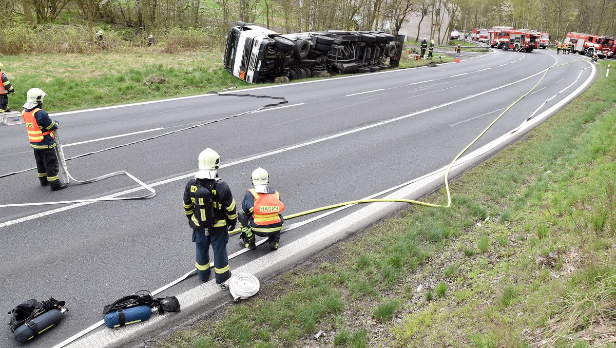 Cisterna převážející 28 tisíc litrů benzínu havarovala ve čtvrtek 13.dubna 2017 před druhou hodinou odpoledne na silnici č. 13 z Boče směrem na Chomutov. Při nehodě se převrátila na bok a z přepadů začal drobně unikat benzín. Přivolaní hasiči začali jímat drobný únik nebezpečné látky, zároveň společně s policií zcela uzavřeli provoz na silnici.