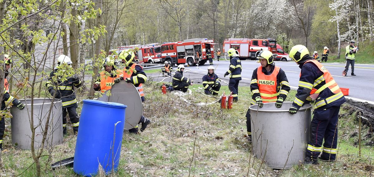 Drobný únik benzínu stíhali hasiči zachytávat, únik na místě kontrolovali také zástupci odboru životního prostřední.