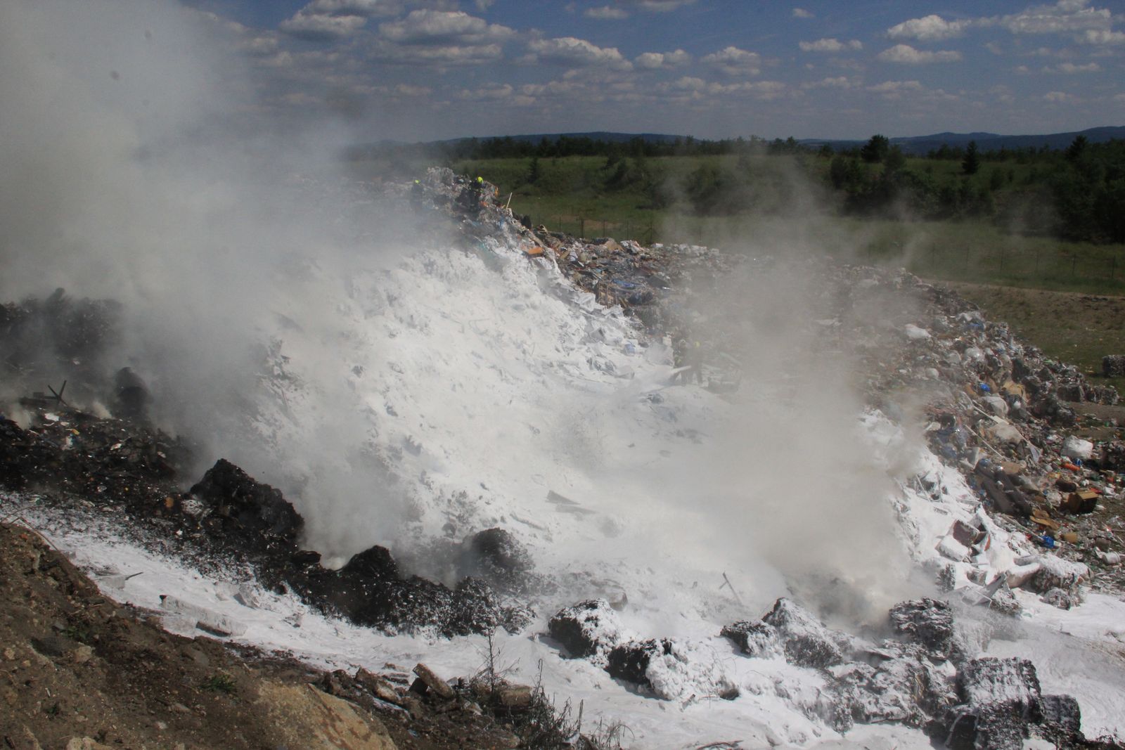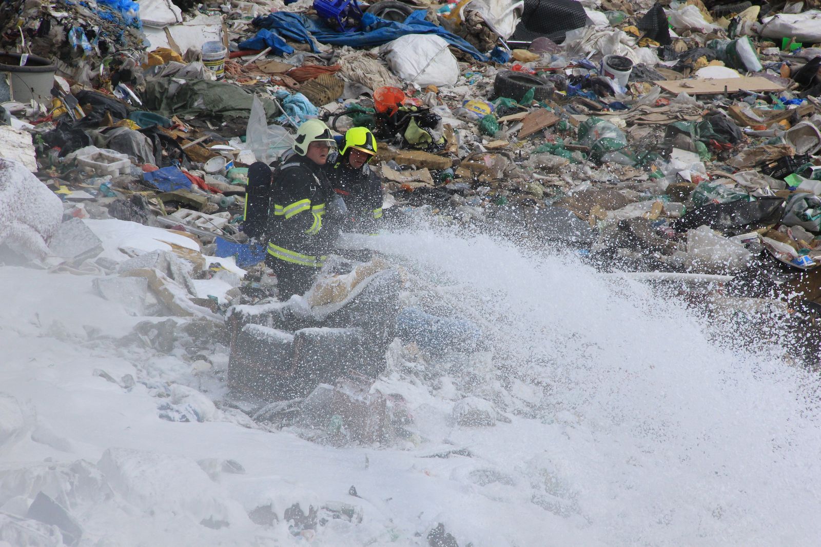 To vyhlásilo druhý stupeň požárního poplachu, na místě postupně zasahovalo patnáct jednotek hasičů. Kromě požární vody bylo nutné na místo zásahu dopravit i velké množství pěnidla, pokrýt hořící odpad vrstvou pěny je účinný způsob likvidace takovéhoto požáru. Hasiči museli téměř celou dobu pracovat v dýchací technice, na místě tak byla i dva protiplynová zásahová vozidla se zásobou tlakových lahví se vzduchem pro dýchací přístroje. Kvůli složitému pohybu zasahujících hasičů v hromadách odpadků velitel zásahu požadoval na místo vrtulník pro hašení ze vzduchu, ten ale ve stejnou dobu zasahoval při pátrací akci jinde v republice a nemohl tak přiletět.