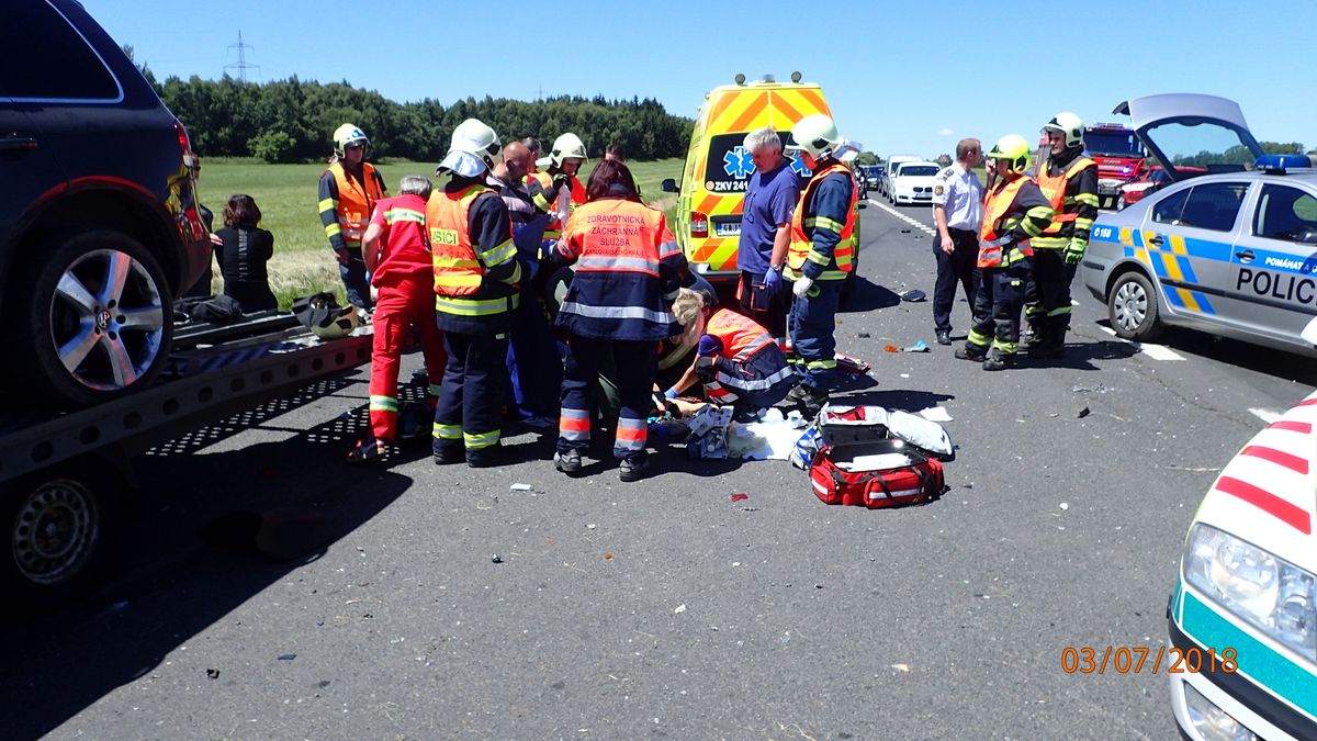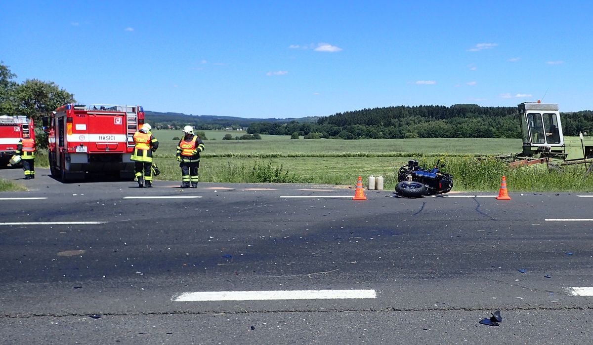 Na silnici z Bochova směrem na Prahu se v úterý, 3.7. 2018, před polednem srazila motorka s nákladním autem. Na místo byly...