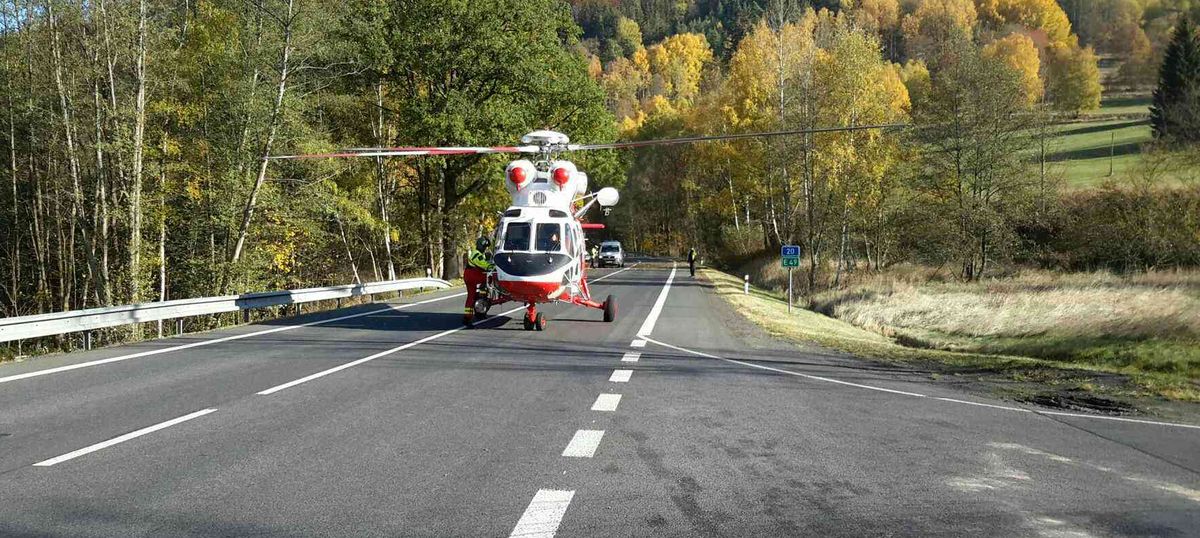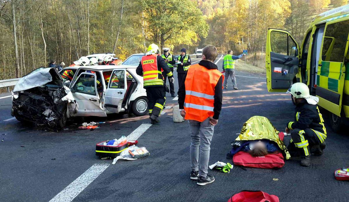 U Bečova se srazila dvě osobní auta, na místo letěl vrtulník.Hasiči vyprostili dvě zaklíněné osoby