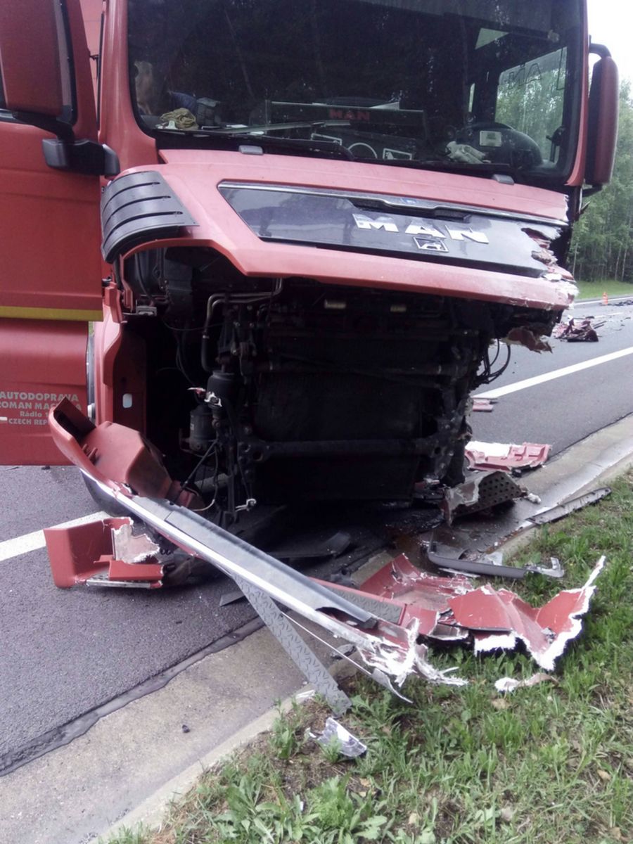 Na silnici I/6 z Chebu na Pomezí se čelně srazilo osobní auto s kamionem. Ve zdemolovaném osobním autě zůstal zaklíněný řidič.