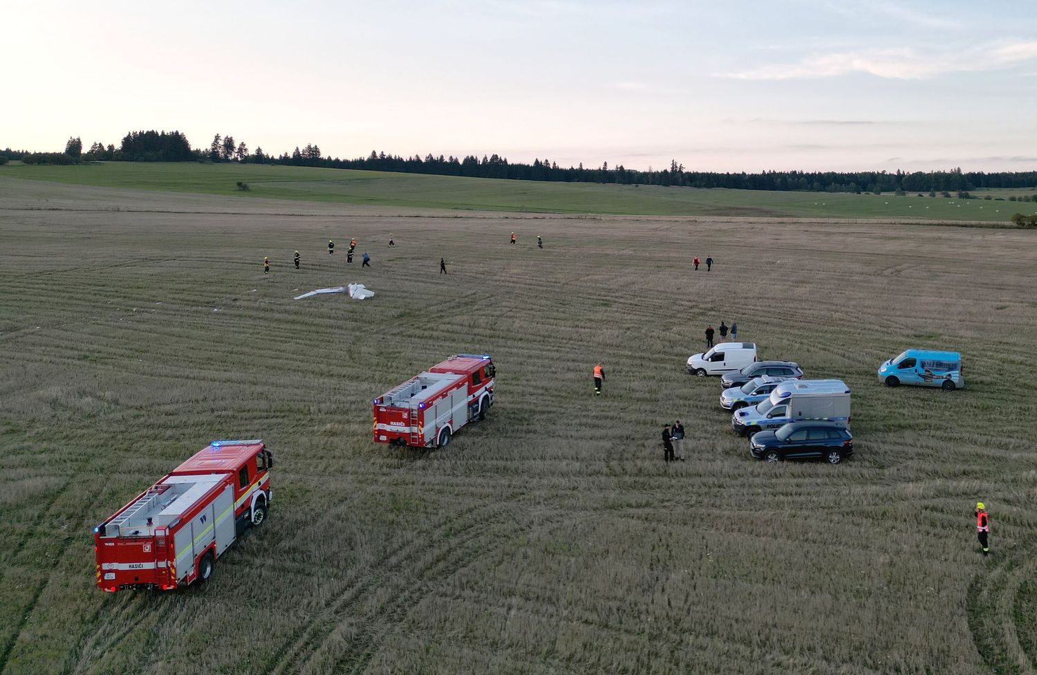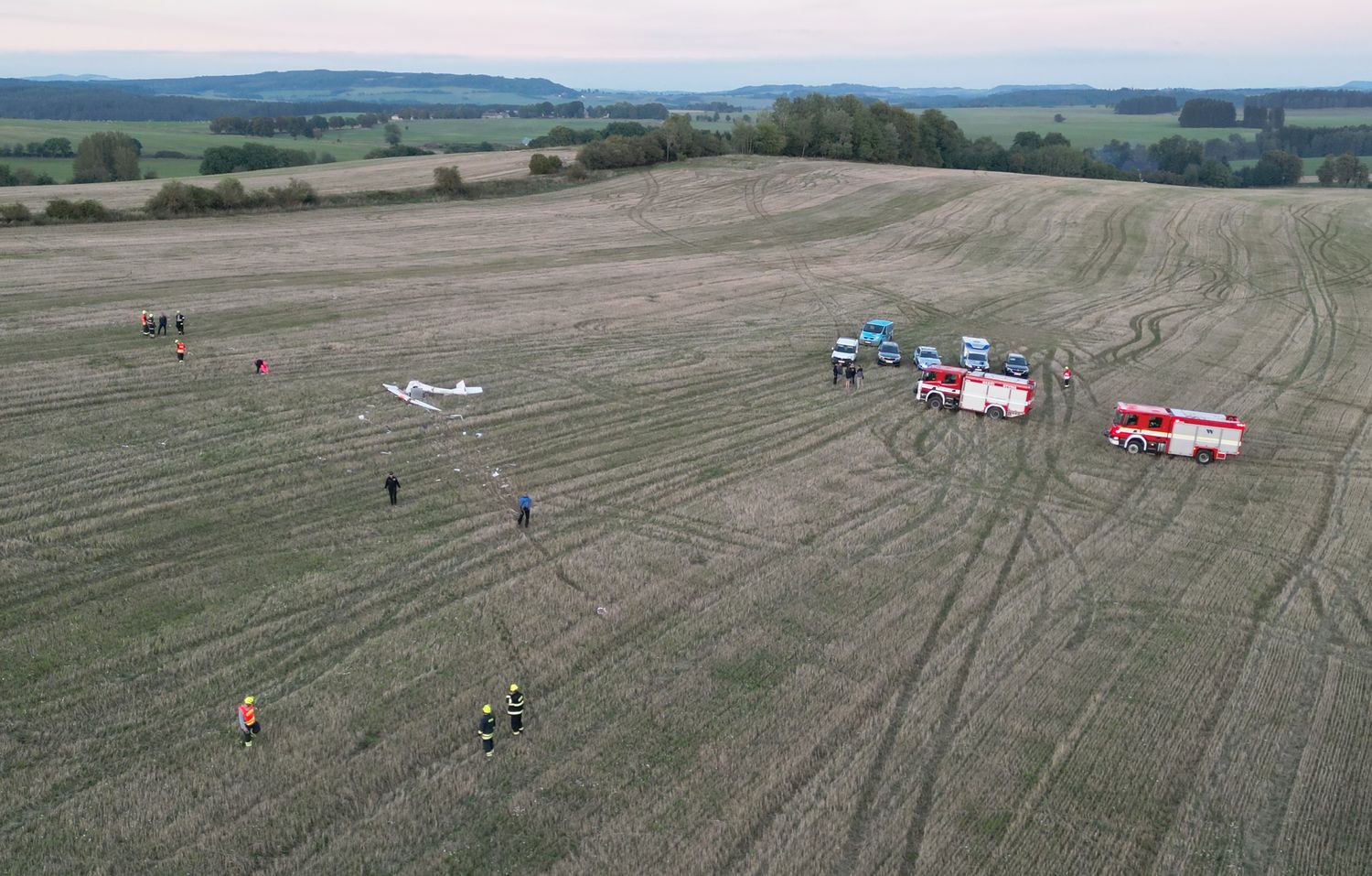 Hasiči zajistili místo nehody, na žádost vyšetřovatelů od policie a také ústavu pro zjišťování příčin leteckých nehod vyhledávali v okolí místa havárie trosky z letadla.