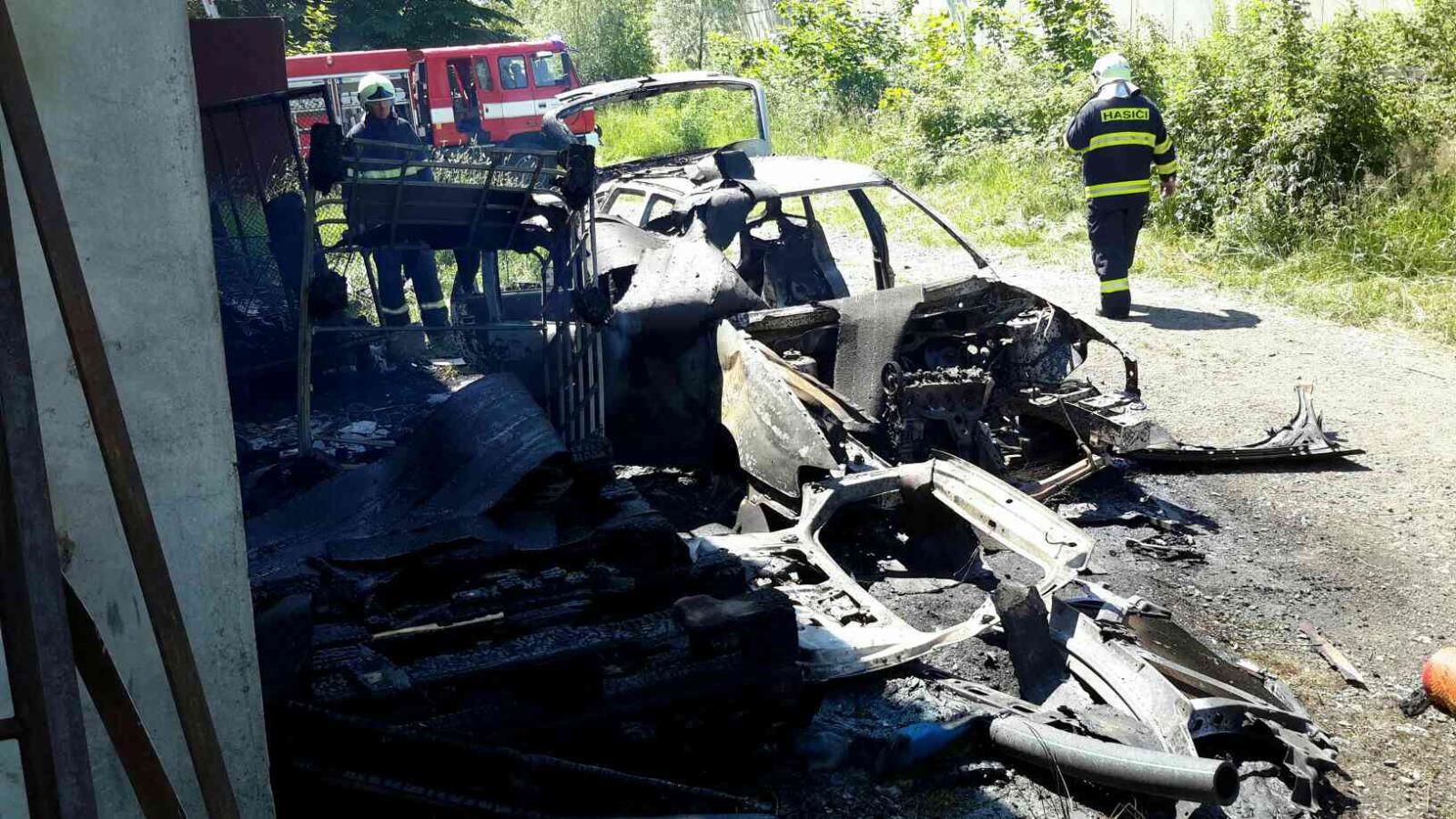 K požáru auta v areálu průmyslového obvodu u obchodu Tesco v Aši vyjížděli v úterý odpoledne hasiči ze stanice Aš. Na místě zjistili, že oheň se z hořícího auta rozšířil i na střechu vedle stojícího objektu, povolali si tak další posily. Celkem tak u události zasahovaly čtyři jednotky hasičů. Požár se podařilo brzy dostat pod kontrolu, hasiči museli část střechy rozebrat. Vzhledem ke složité konstrukci střechy místo požáru přes noc hlídal zástupce majitele, aby nedošlo k rozhoření případného skrytého ohniska, ve středu ráno pak objekt znovu zkontrolovali hasiči z Aše. Termokamera nenašla žádné skryté ohnisko, velitel tak mohl nahlásit likvidaci požáru. Přesná škoda je v šetření, příčinou je podle vyšetřovatele úmyslné zapálení vozidla.