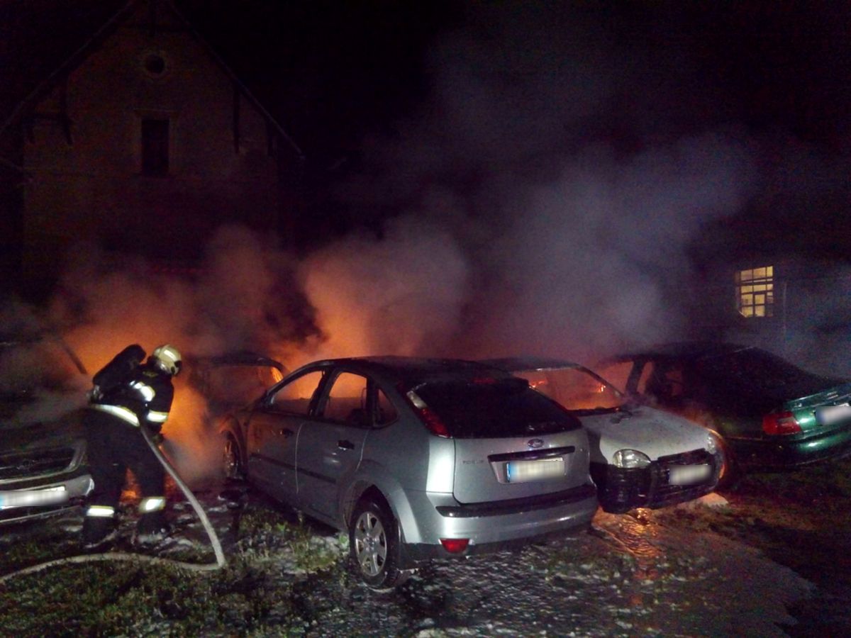 Velitel zásahu potvrdil požár auta s tím, že oheň se rozšířil i na další vedle zaparkovaná vozidla. Celkem oheň poškodil osm osobních vozidel. Požár dostali hasiči pod kontrolu do čtvrthodiny od přijetí výzvy, celkem na místě zasahovaly čtyři jednotky hasičů.