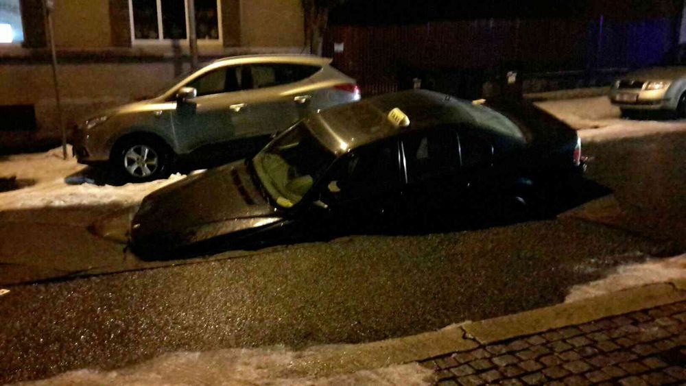 Do díry v propadlé vozovce v centru Chebu zajelo osobní auto taxislužby. Událost se stala krátce před půl třetí hodinou v noci z pátku na sobotu. Řidič vozidla taxislužby dokázal ze zapadlého auta vystoupit sám bez zranění. Přivolaní hasiči ze stanice Cheb zajistili auto navijákem, aby nedošlo k dalšímu propadnutí. Na místo byl povolán i jeřáb hasičů, ten nakonec hasiči pro vyproštění nepoužili. Auto postupně nadzvedávali vyprošťovacími vaky a navijákem vytáhl mimo propadlou díru. Propad nejspíš způsobila havárie vodovodního potrubí pod silnicí, přívod vody v ulici je tak zastavený. V ranních hodinách je zajištěna pro obyvatele cisterna s pitnou vodou. Přímo na místě zkontrolovali propad v silnici i pracovníci plynárenské pohotovosti, kteří vyloučili, že by v tomto místě vedl pod silnicí plyn. Ulice je cela uzavřena až do zajištění opravy.
