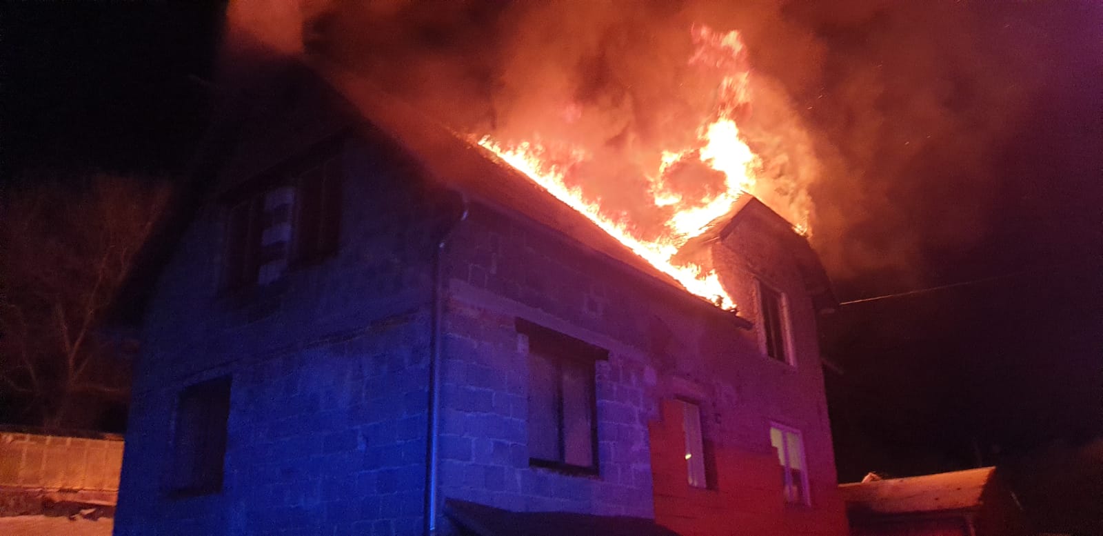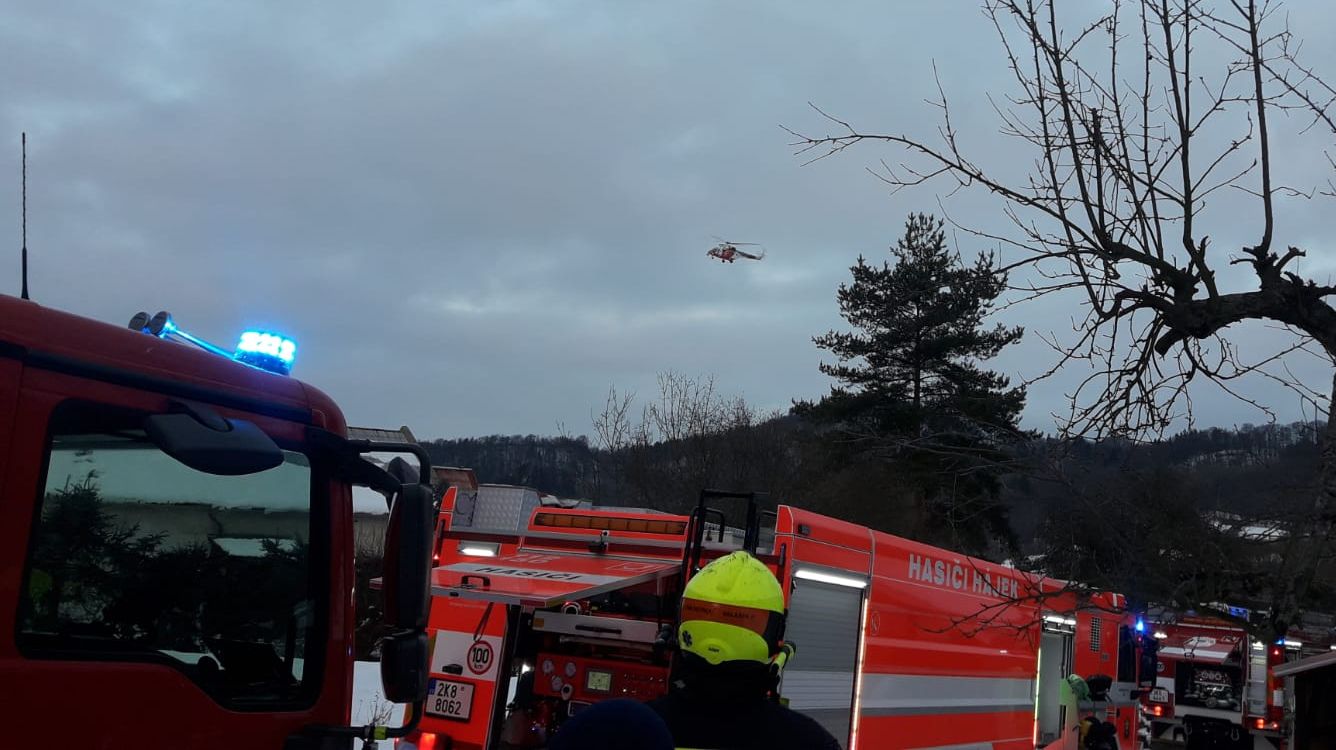 V Jakubově vyhořel rodinný dům, majitele transportoval do nemocnice vrtulník