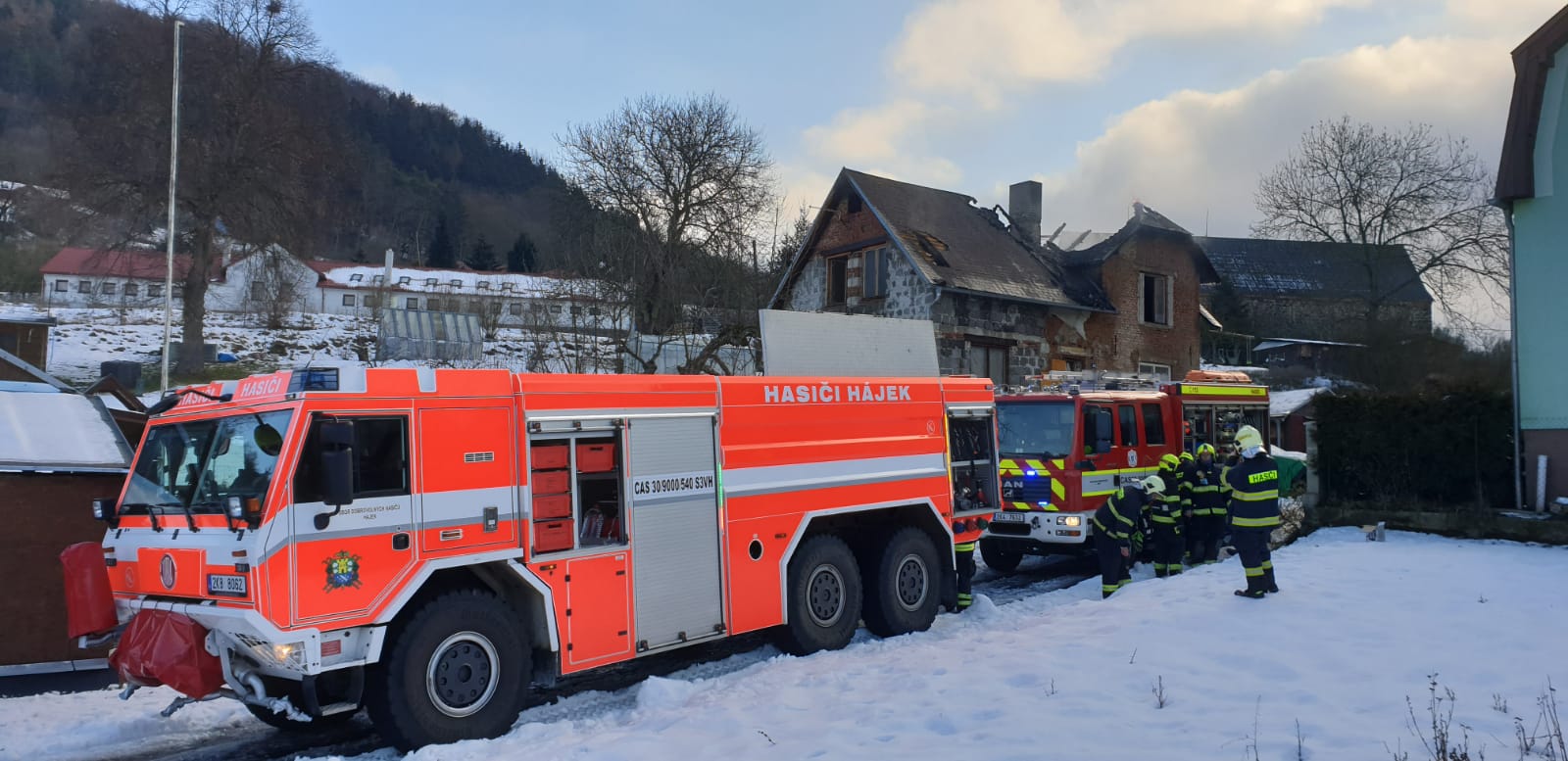 K hlášenému požáru střechy rodinného domu v Jakubově u Vojkovic na Karlovarsku vyjížděli hasiči v neděli po šesté hodině ráno. Požár zasáhl celou střechu a šířil se do obytných částí domu. Na místě zasahovalo pět jednotek hasičů. V domě byla v době požáru jedna osoba, která utrpěla popáleniny a také se nadýchala kouře. Přivolaný lékař záchranné služby rozhodl o leteckém transportu na popáleninovou kliniku v Praze, hasiči zajistili poblíž místa požáru prostor pro přistání vrtulníku. Po třech hodinách zásahu byl požár zlikvidovaný, bylo nutné rozebrat část krovů a vyklidit trosky zničené ohněm. Při tomto vyklízení nalezli hasiči v prostoru požáru munici, na místo tak policie přivolala pyrotechnika. Zásah byl ukončený v odpoledních hodinách. Výše škody způsobena požárem je předběžně odhadnuta na 500 tisíc korun, příčina je podle vyšetřovatele požárů stále v šetření.
