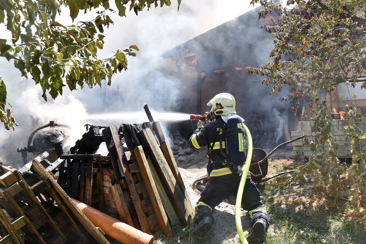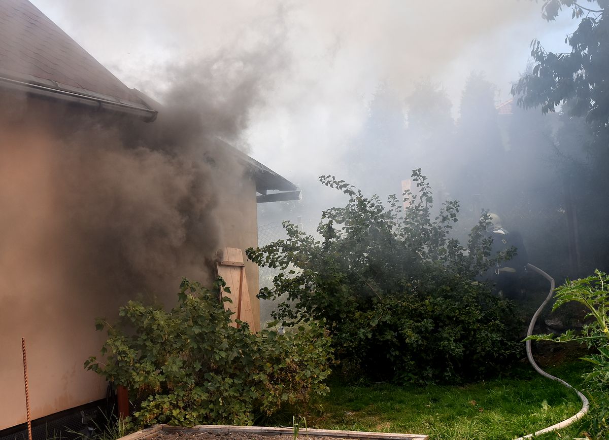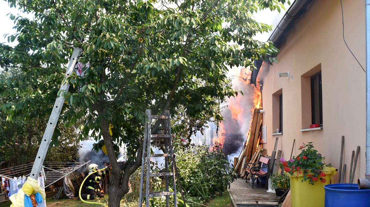 Dřevník a také dřevěný přístavek u rodinného domu v Jenišově na Karlovarsku zničil ve čtvrtek, 19.7. 2018, po poledni požár.