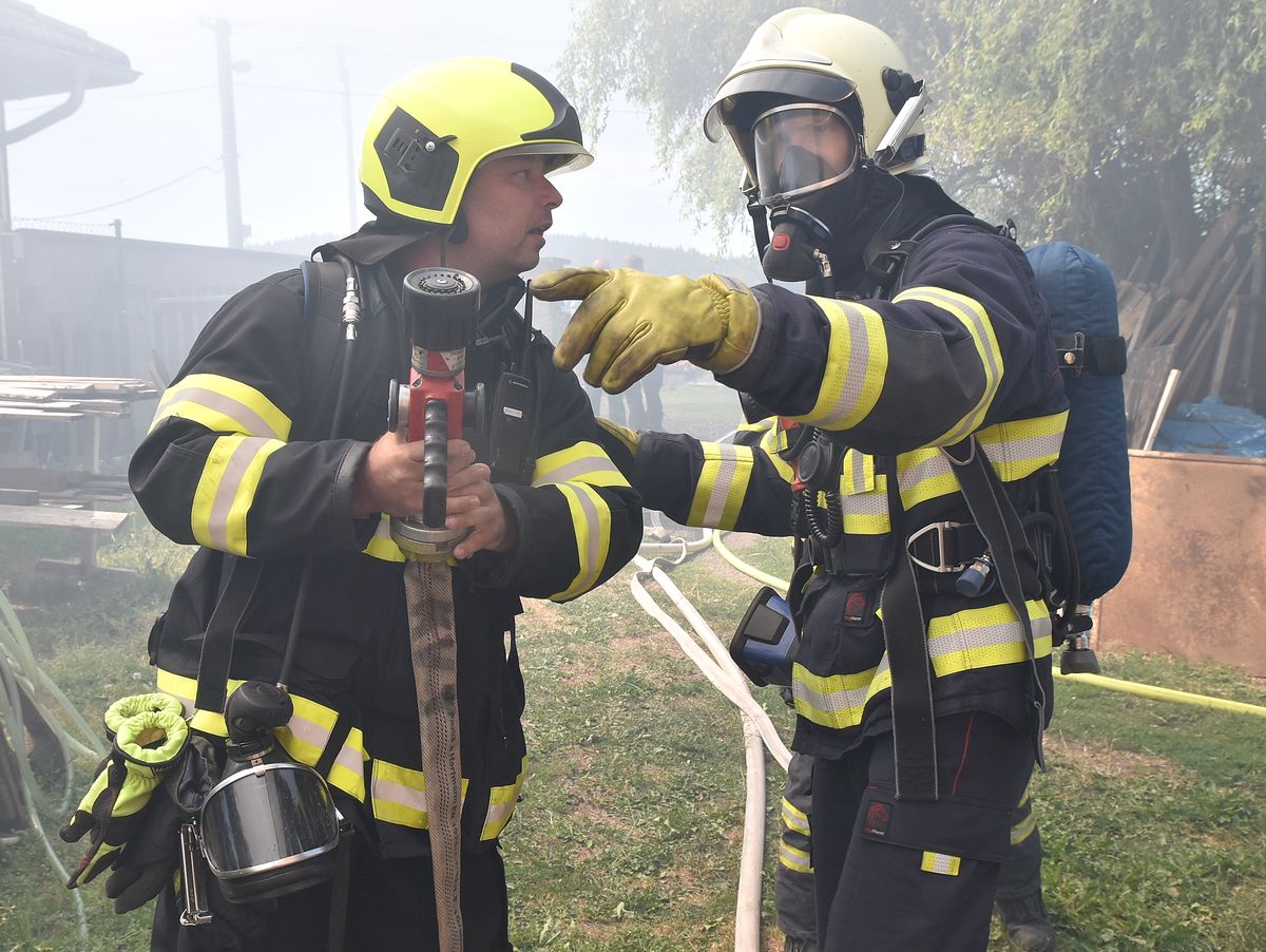 Pro likvidaci plamenů museli hasiči použít pět vodních proudů, rovněž museli rozebrat část střechy, kam se