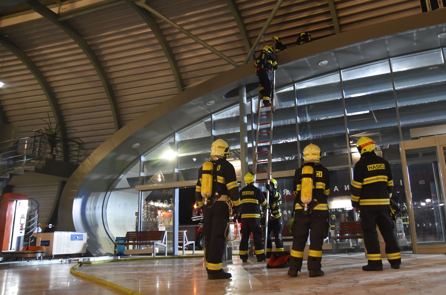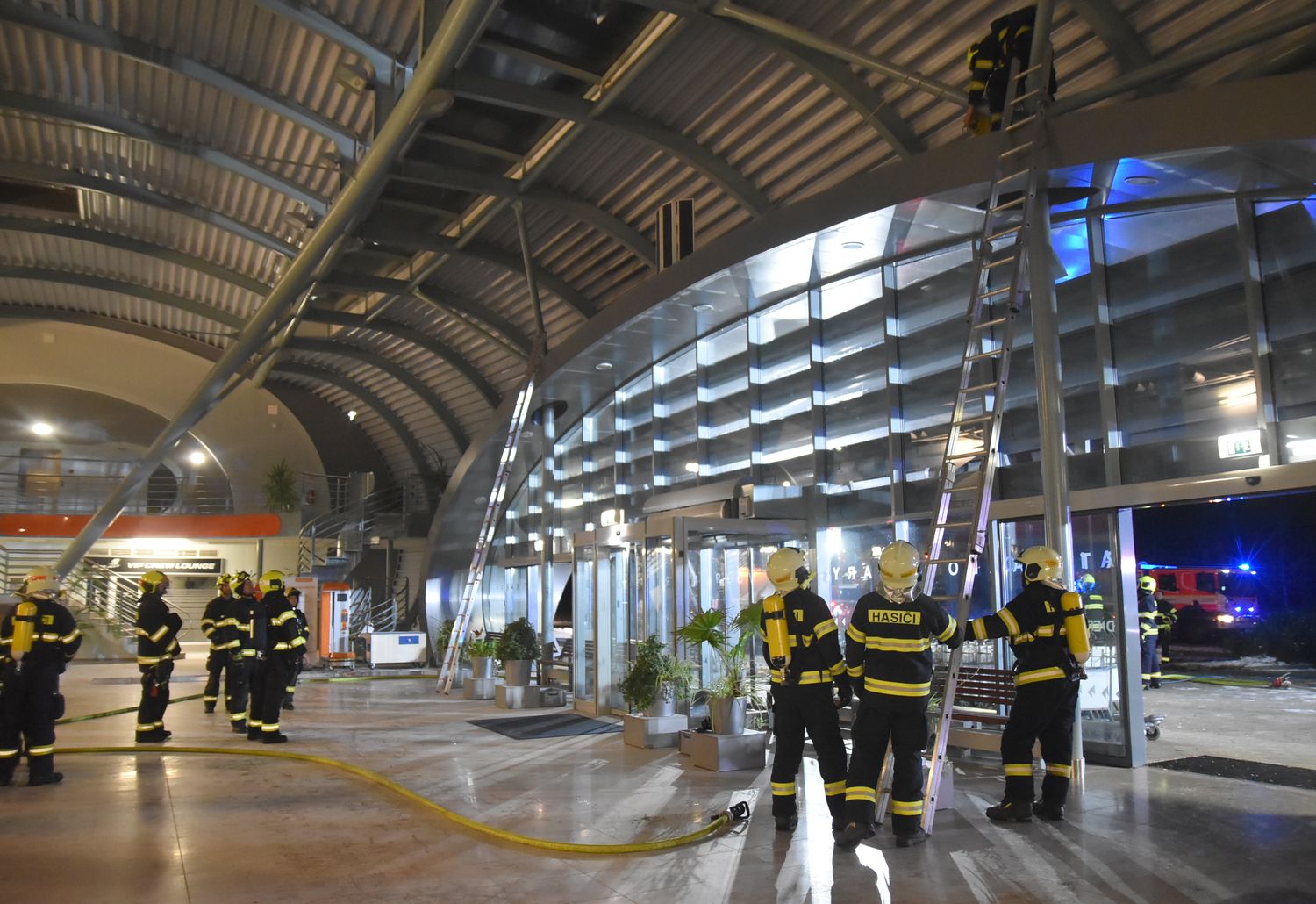 Krátce po půl třetí v noci ze soboty na neděli vyjížděli hasiči k hlášenému požáru hlavní odletové haly mezinárodního letiště v Karlových Varech v části města Olšová Vrata.