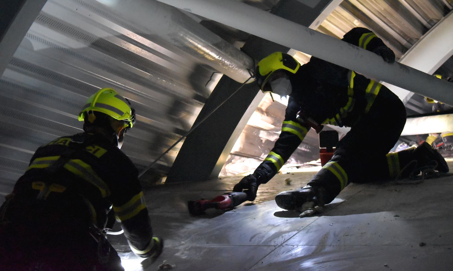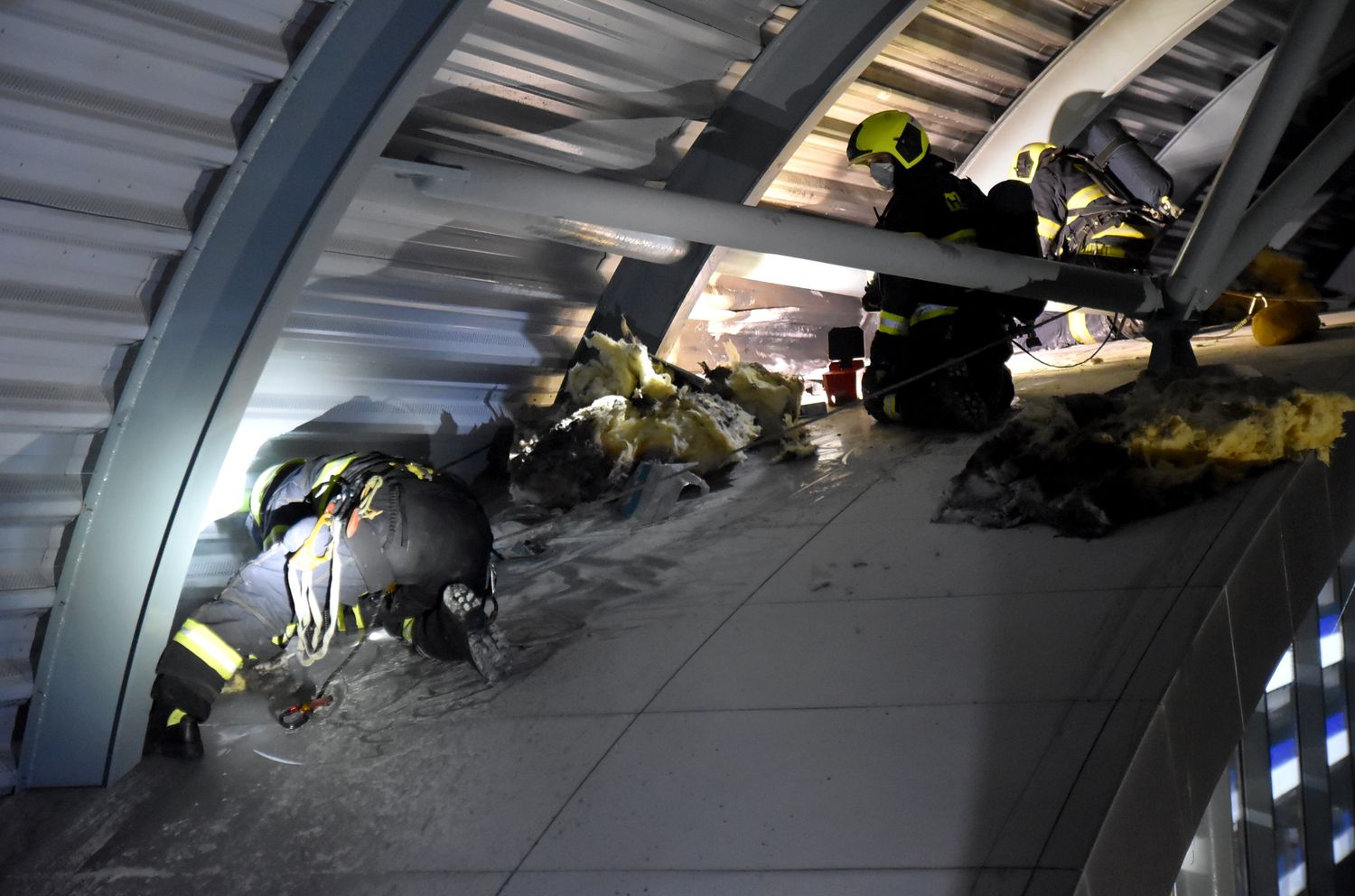 Na hašení použili hasiči speciální zařízení Cobra, zároveň začali odvětrávat zakouřenou halu. Požár se stále šířil pod plechovým pláštěm, bylo tak potřeba rozebrat část krytiny z venku i zevnitř haly.