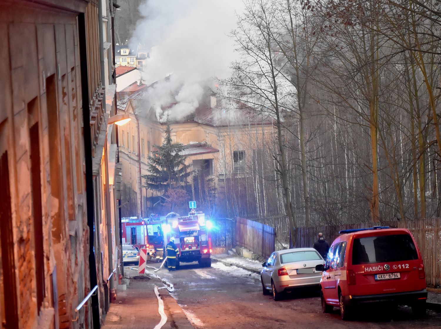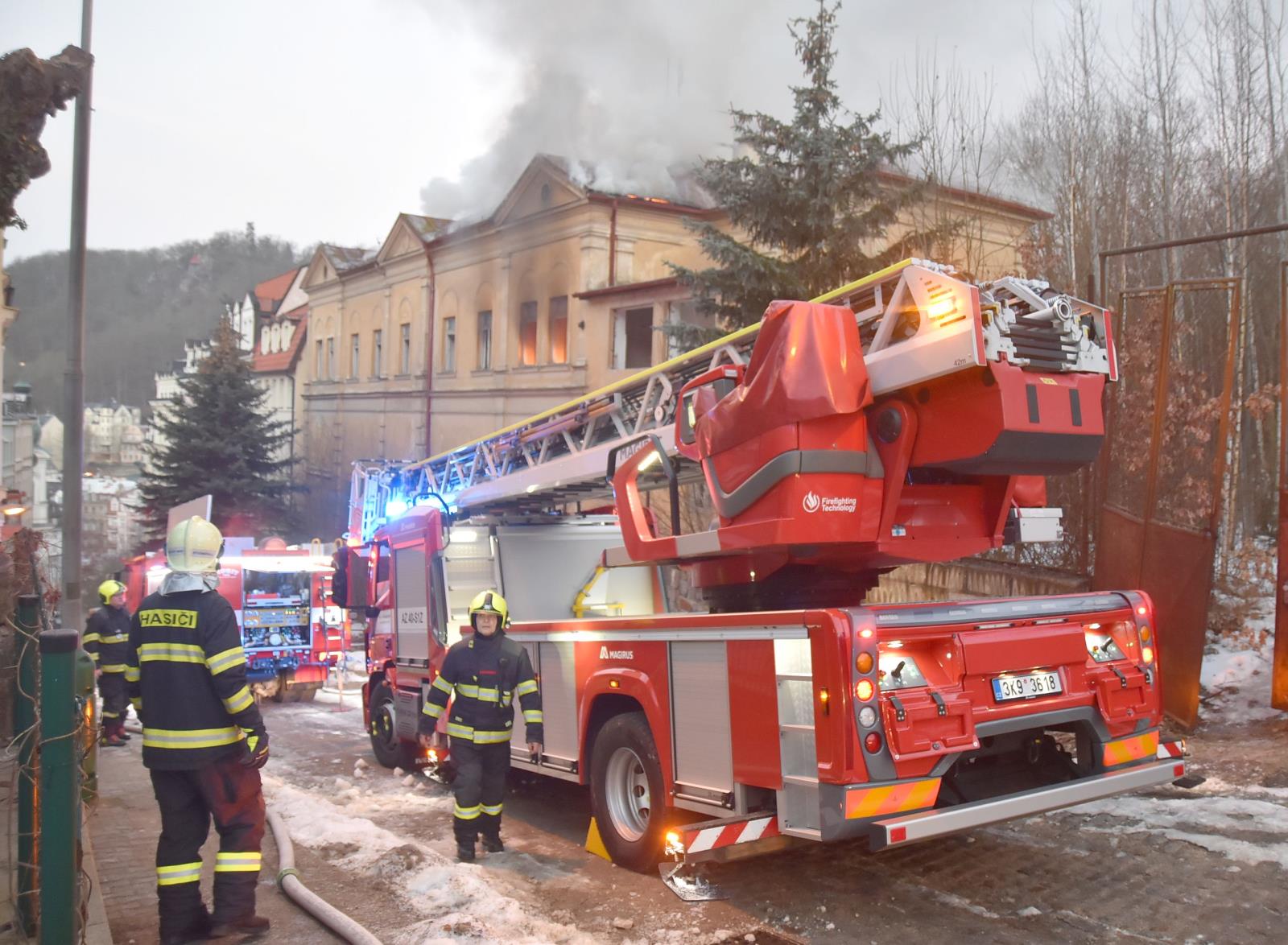 24.2.2021 Krátce po šestého hodině ráno přijali hasiči oznámení, že ze střechy neobývané budovy v ulici nad karlovarským Vřídlem vychází dým. První jednotka hasičů na místě potvrdila, že hoří v horních patrech bývalé sokolovny a oheň se šíří do střechy. Na místo tak byly okamžitě povolány další posilové jednotky. Místo zásahu bylo v prudkém svahu, povrch vozovky byl navíc v ranních hodinách silně namrzlý. Hasiči tak měli problém s ustavením zásahové techniky, na místě nebylo vůbec možné bezpečně ustavit výškovou techniku. Hasební zásah tak byl vedený uvnitř budovy, kde docházelo k narušení konstrukcí stropů a podlah, hasiči tak museli postupovat velmi obezřetně. Oheň zasáhl celou střechu, dostat plameny od kontrolu se hasičům podařilo po téměř pěti hodinách zásahu. Použít museli hasiči i hasební pěnu, aby vyplnili část podkroví, kam se nebylo možné se kvůli poškozeným stropům dostat. V těsné blízkosti hořícího domu stojí hotel, aktuálně bez hostů. Hasiči se tak od začátku zásahu zaměřili kromě samotného hašení i na ochranu sousedního objektu, aby nedošlo k rozšíření požáru i na tento hotel. Kouř z požáru vnikl do sousedního hotelu, kde spustil požární signalizaci. Žádné další škody ale nezpůsobil. Kvůli potřebě většího počtu zásahové techniky a hasičů s dýchací technikou vyhlásil velitel zásahu druhý stupeň požárního poplachu. Po zlikvidování plamenů bylo nutné rozebrat i část střešních konstrukcí. Zásah pokračoval až do odpoledních hodin, velitel zásahu na místo povolal i zástupce stavebního úřadu pro posouzení stavu objektu. Příčina požáru a výše škody je v šetření.