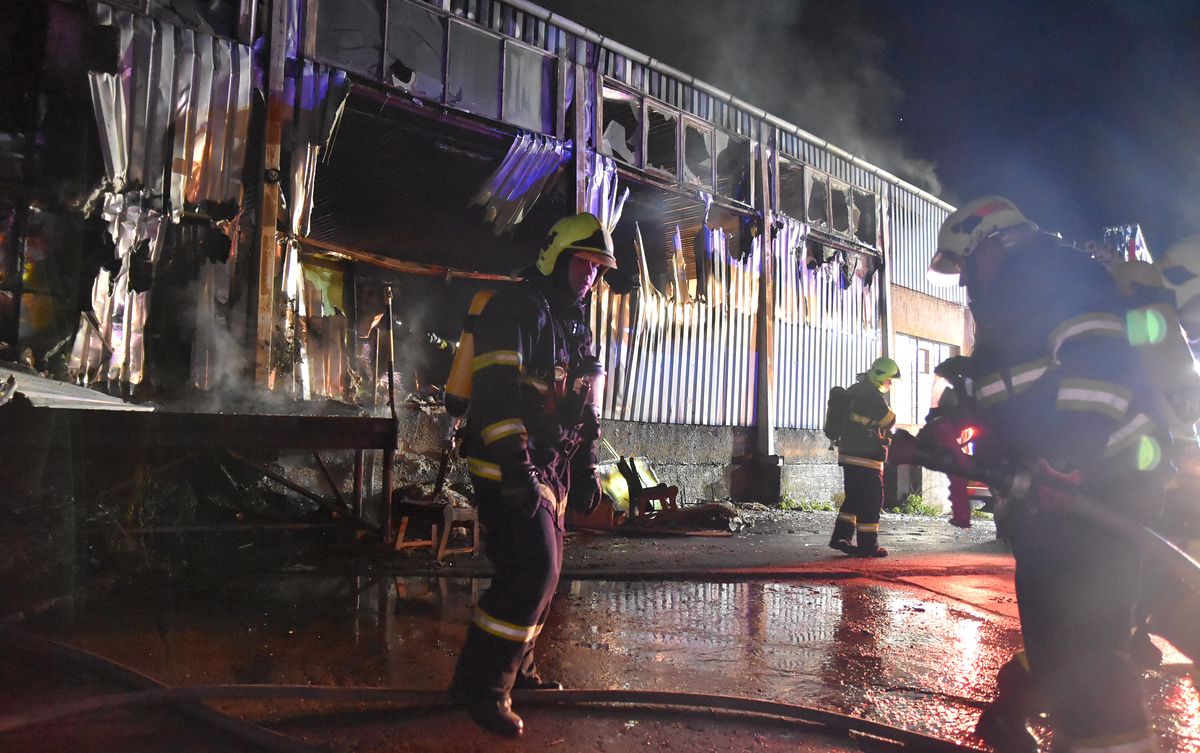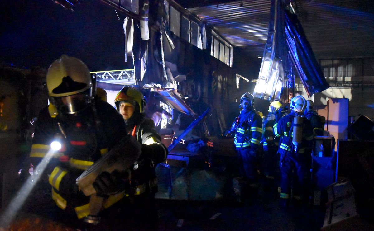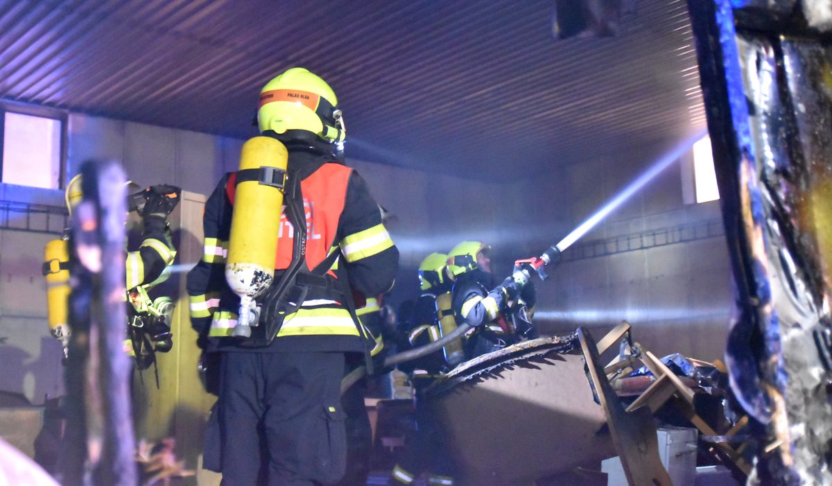 První jednotky na místě potvrdily, že hoří uvnitř haly, kde byl uskladněný nábytek. Oheň zasáhl zhruba polovinu haly, na několika místech se vlivem požáru zhroutila střecha plechového objektu. Po likvidaci požáru uvnitř haly prohoříval oheň stále mezi plechovými stěnami, na likvidaci požáru proto hasiči použili i hasicí zařícení Cobra.