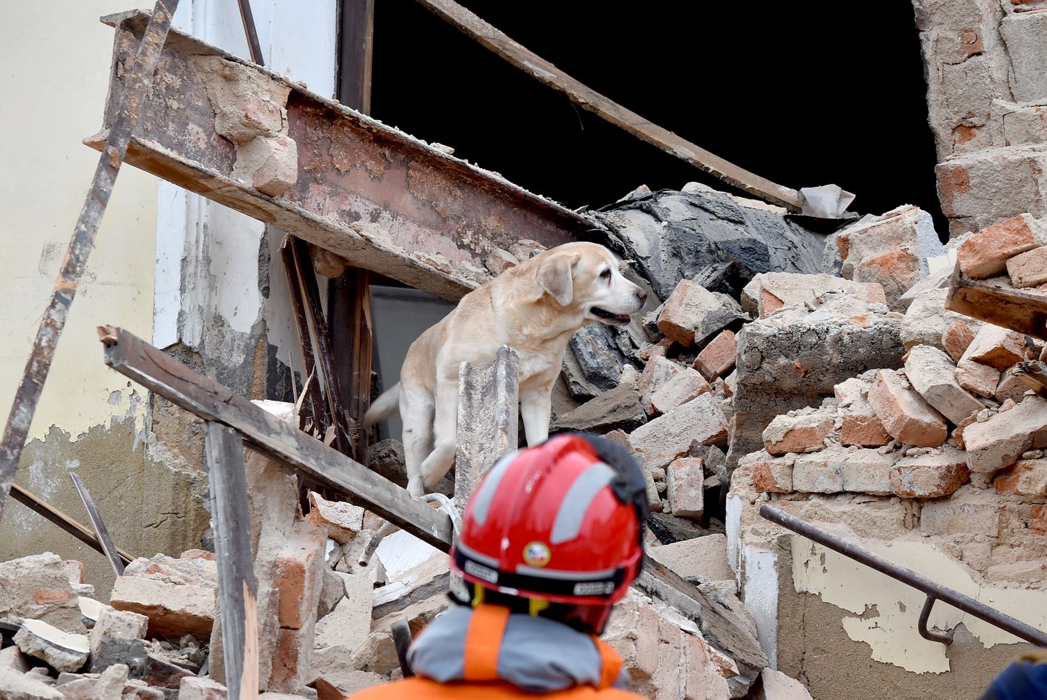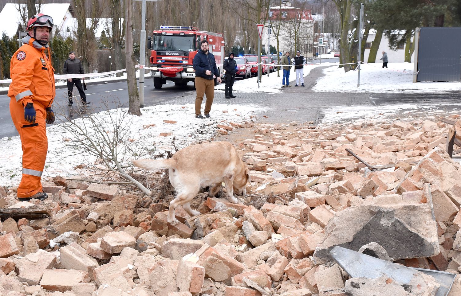 Na místo tak hasiči povolali kynology se speciálně vycvičenými psi pro vyhledávání osob v sutinách. První pes průzkumem celého prostoru neoznačil žádné místo, sutiny prohledala další přivolaná skupina, ani další pes neoznačil žádné místo, kde by mohla být zavalená osoba.