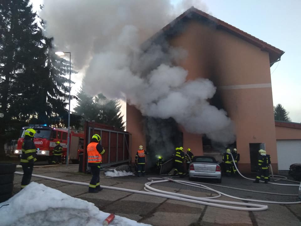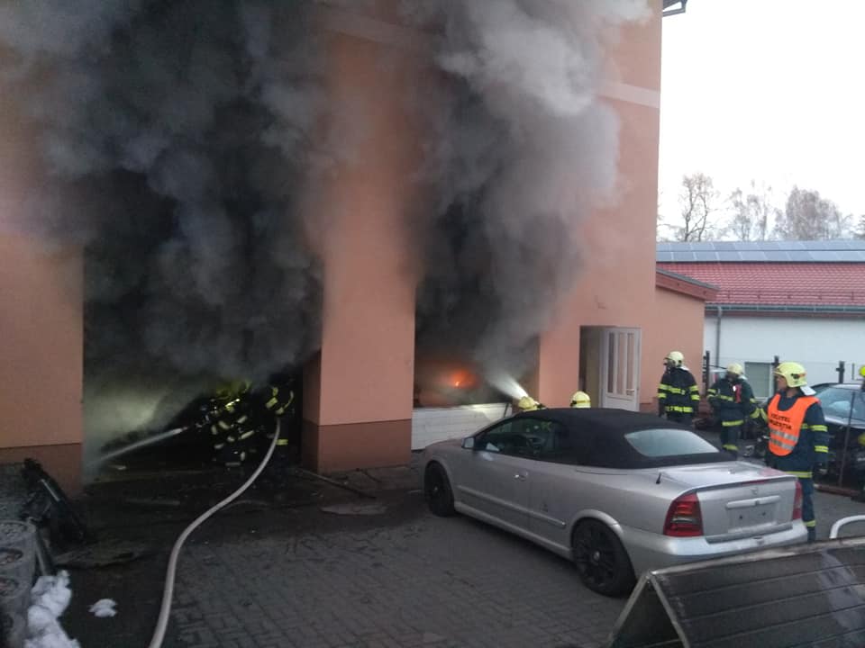 V prostorách autodílny v obci Rudolec na Sokolovsku začalo hořet v sobotu, 16.února 2019, odpoledne.