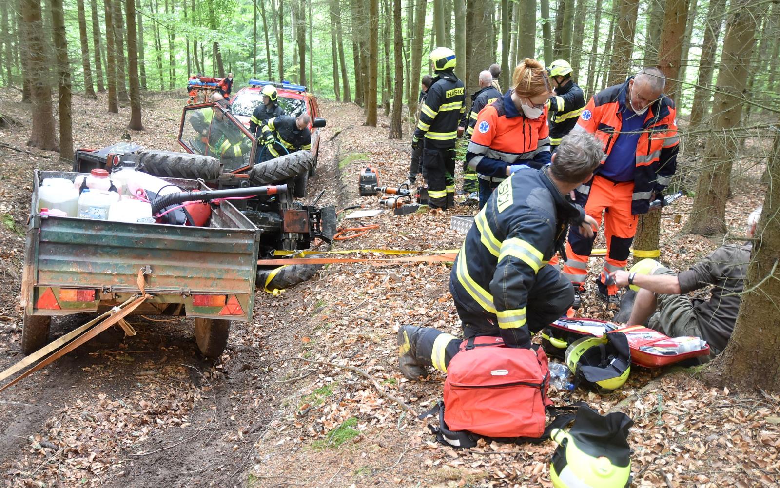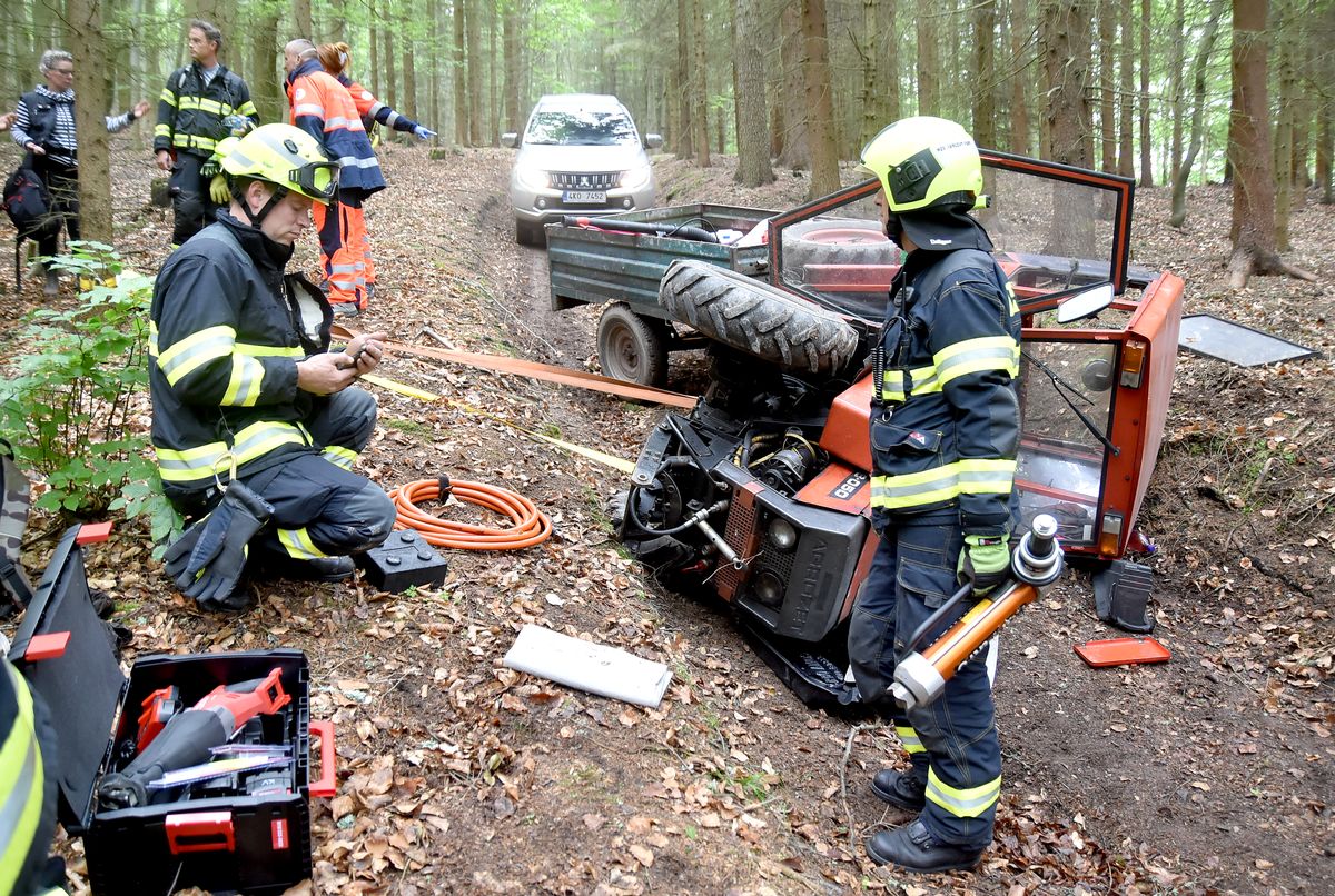 Na lesní cestě u Vítkova vrchu v Karlových Varech se v úterý ráno převrátil malý traktor. V kabině stroje zůstal zaklíněný řidič. Přivolaní hasiči museli použít hydraulické nástroje, aby vyprostili zaklíněnou nohu, muže poté dostali ven z traktoru. Na místě si řidiče převzala posádka záchranné služby, která muže převezla do nemocnice. Hasiči mezitím zachytávali unikající provozní kapaliny z traktoru. O převrácení stroje zpět na kole a odtažení z lesa se postaral majitel.