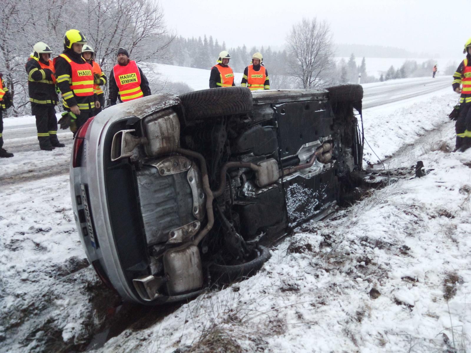 Hořící auta, dopravní nehody, ale i utonulá osoba. Hasiči měli během Štědrého dne hodně práce
